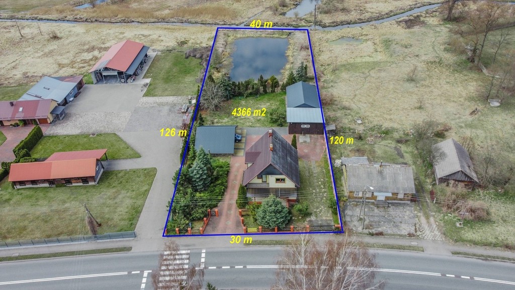 Działka na której znajduje się nieruchomość jest w kształcie trapezu o powierzchni 4254 m2.