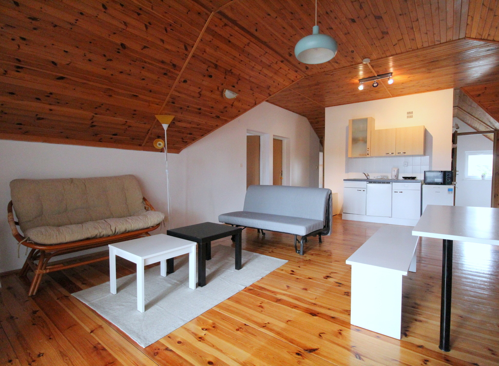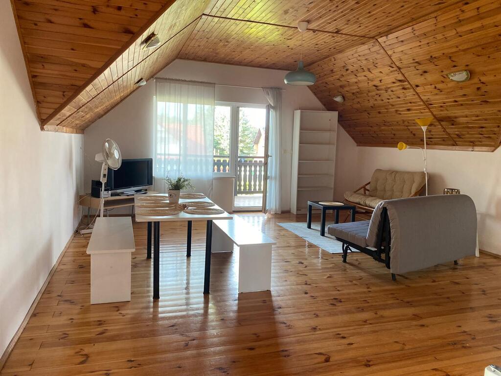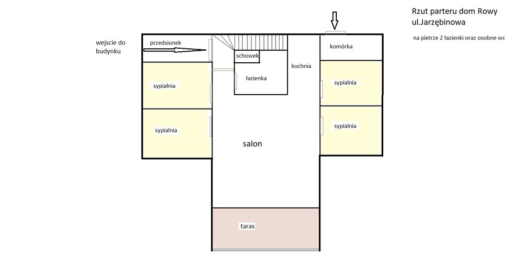 Dom posiada 8 niezależnych sypialni, dwa salony z aneksami kuchennymi, korytarz oraz 3 łazienki z prysznicem i 1 oddzielny wc, dodatkowo za domem znajduje się pomieszczenie gospodarcze. Na ogródku jest dostępny schowek na drewno oraz altana z miejscem na grilla.