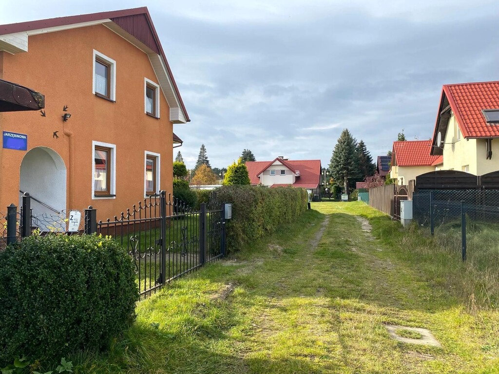 -działka ogrodzona z zagospodarowany zielenią o powierzchni 356 m2