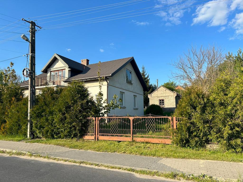 Dom położony jest na działce, która delikatnie się wznosi i dzięki temu oddziela część z domem od części zadrzewionej, na której są również 2 budynki gospodarcze. Są to murowane budynki wyposażone w instalację elektryczną. Pierwszy w bliskiej odległości od domu ma powierzchnię ok. 50m2, który posiada piwnicę na ok. 2/3 powierzchni budynku. Drugi budynek, w dalszej części działki to dawna obora o powierzchni ok. 100m2. Oba budynki są puste.