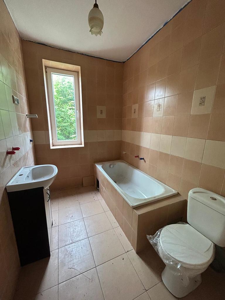 Łazienki z wanną, umywalką i oknem