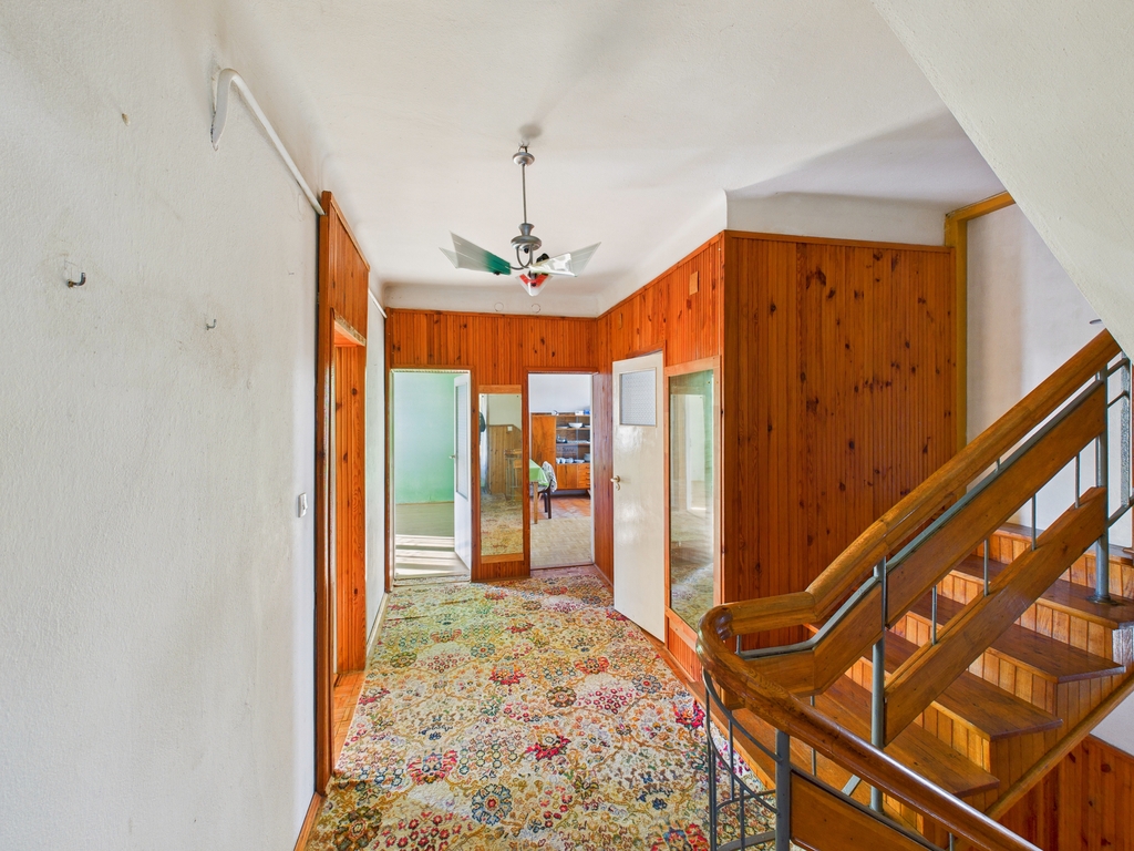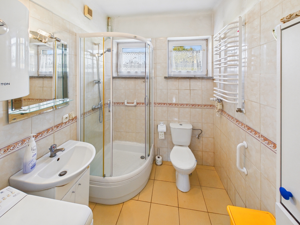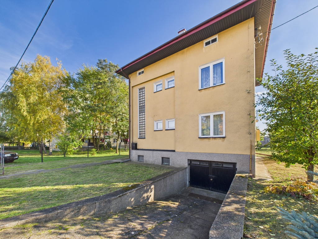Na ogrodzonej działce o powierzchni 1081 m.kw znajduje się dom jednorodzinny o powierzchni użytkowej ok. 124 m², w całości podpiwniczony (ok. 62 m²). Solidnie zbudowany dom kostka z lat 70-ch okresu PRL-u, posiada