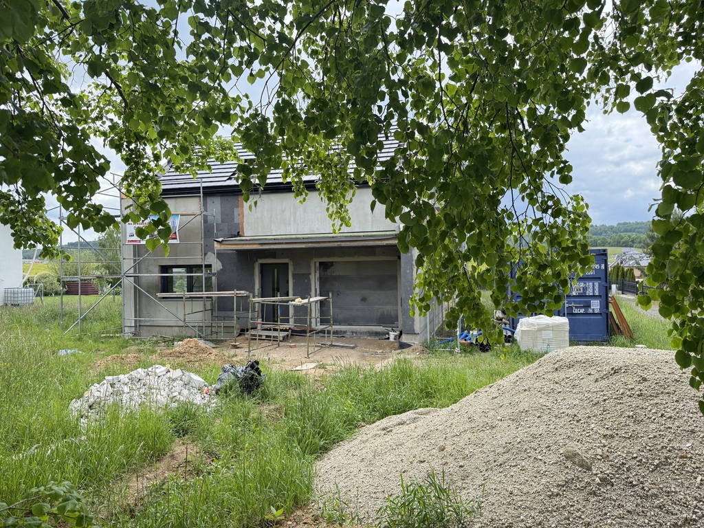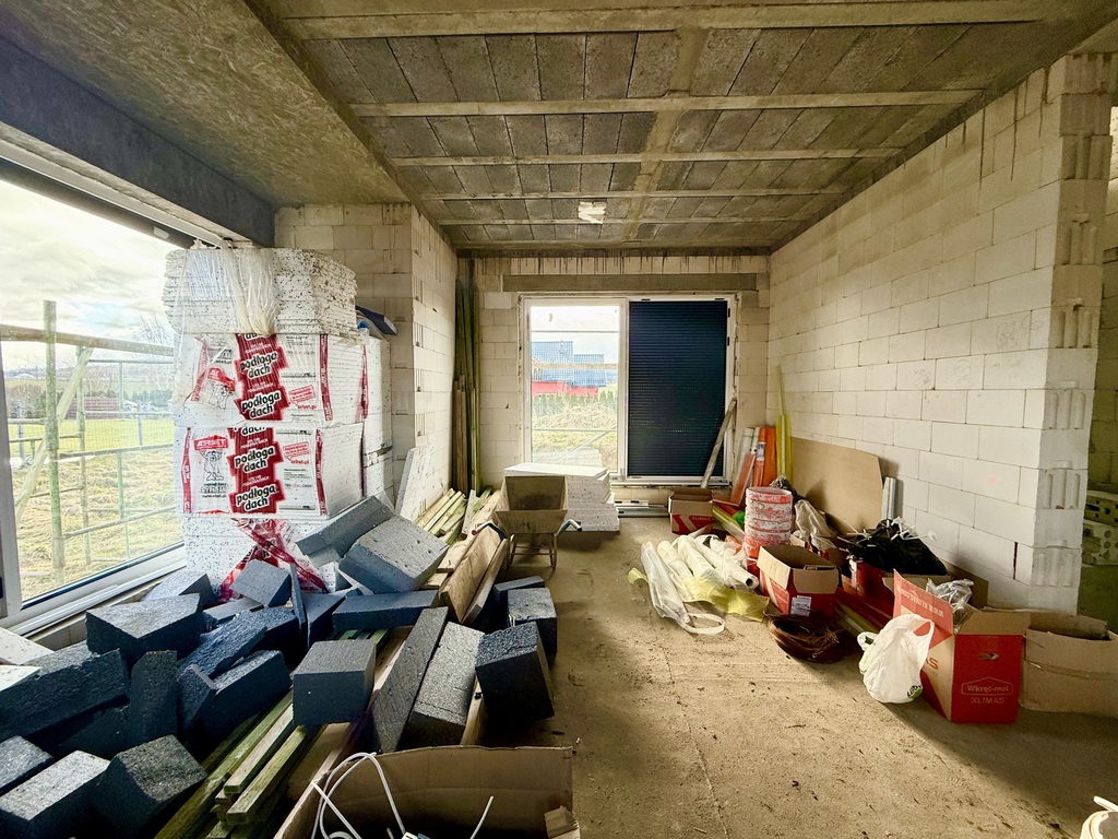 Dom jest w trakcie budowy, termin oddania pierwszy kwartał 2026.  Budynek został wybudowany  z bloczków betonu komórkowego, ocieplonym styropianem 20cm plus zewnętrzny tynk cienkowarstwowy. Wyposażony jest w okna PCV z roletami zewnętrznymi elektrycznymi góra i dół. Zaplanowano ogrzewanie podłogowe w całym budynku  ( góra i dół). Budynek jest niepodpiwniczony.