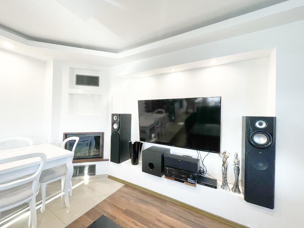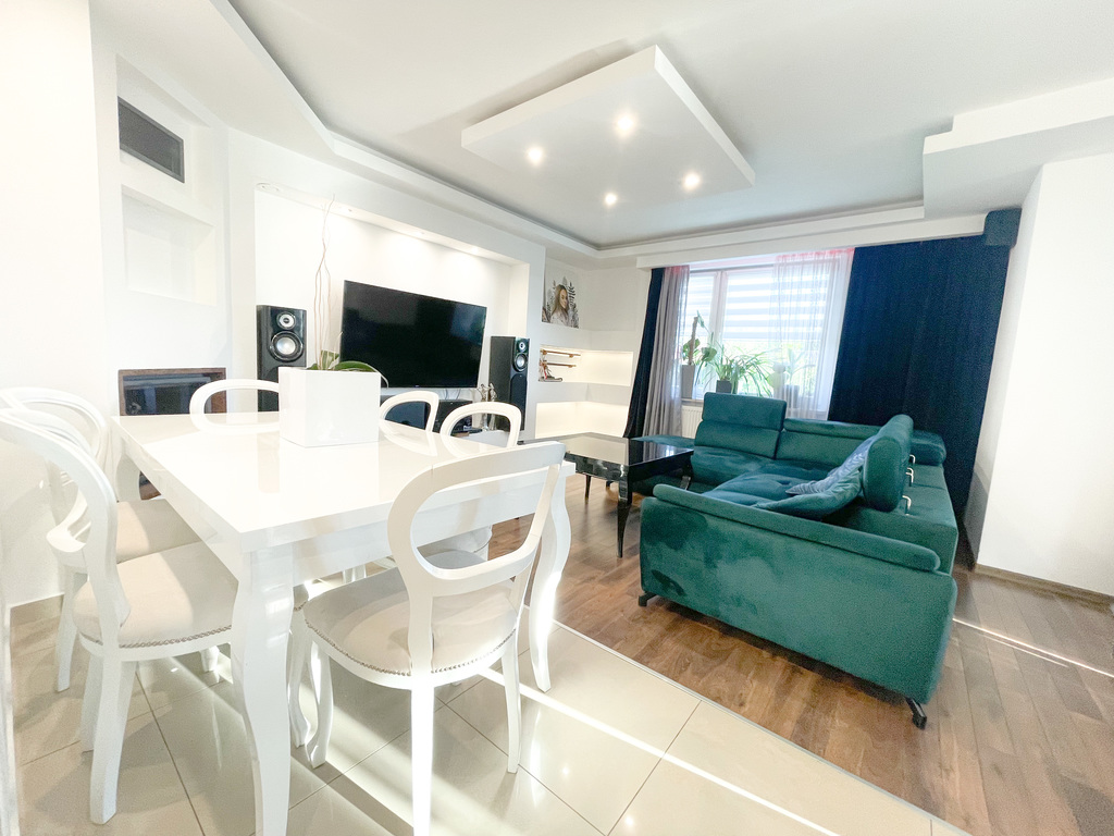 -przestronnego, doświetlonego salonu połączonego z jadalnią, w którym znajduje się kominek