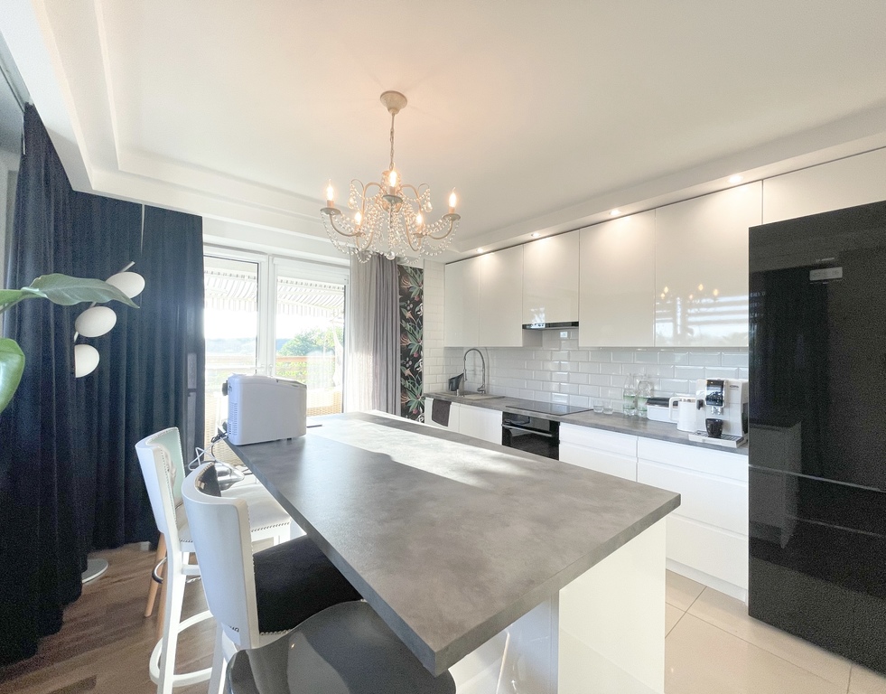 -otwartej kuchni z wyjściem na urokliwy taras i zejściem do ogrodu