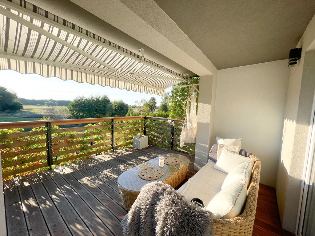 Niewątpliwie wielkim atutem nieruchomości jest urokliwy taras z bezpośrednim zejściem do ogrodu, na którym można odpocząć i zrelaksować się po całym dniu pracy w towarzystwie przyrody, a także znajdujące się w bliskiej odległości sklepy i szkoła.