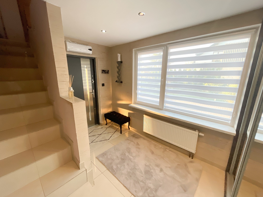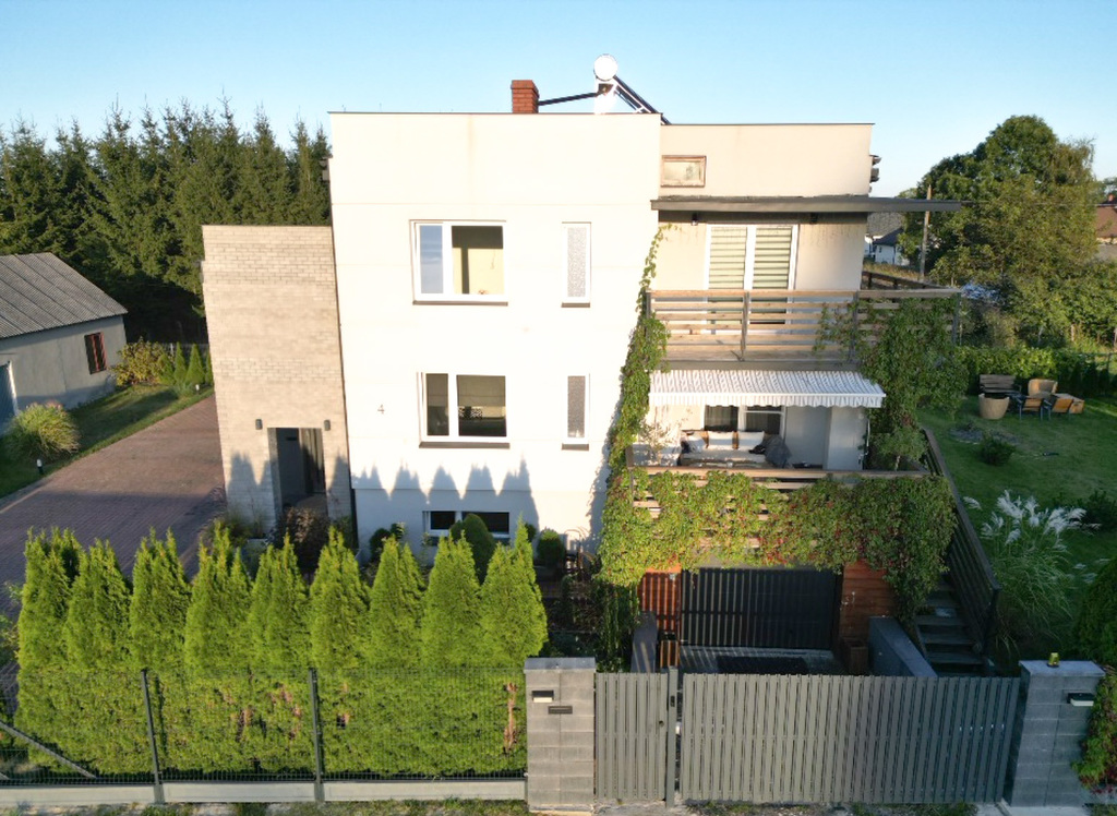 Dom został zaprojektowany w bardzo przemyślany i funkcjonalny sposób. Spory metraż nieruchomości pozwala na użytkowanie go w dwojaki sposób - jako całości lub dzięki stworzonemu osobnemu wejściu w formie dwóch odrębnych mieszkań. Jest to idealna opcja dla dużych rodzin lub pod inwestycję w celu wynajęcia części domu.