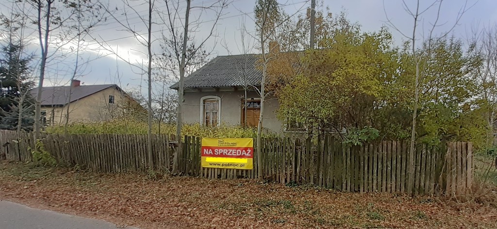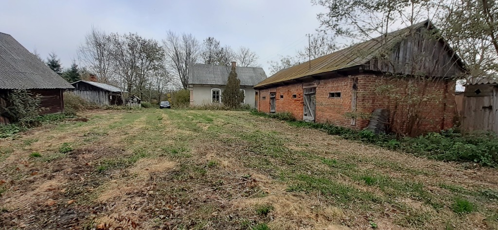 Działka zabudowana murowanym budynkiem jednorodzinnym i budynkami gospodarczymi. Prąd i wodociąg gminny na działce, kanalizacji - szambo. Kształt działki - prostokąt, częściowo ogrodzona siatką i drewnianym płotem.