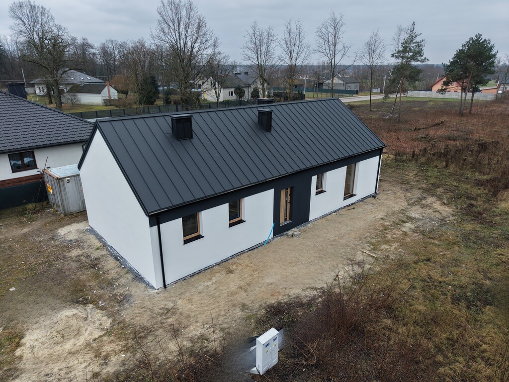Dom parterowy, wolnostojący, z funkcjonalnym i komfortowym rozkładem pomieszczeń.