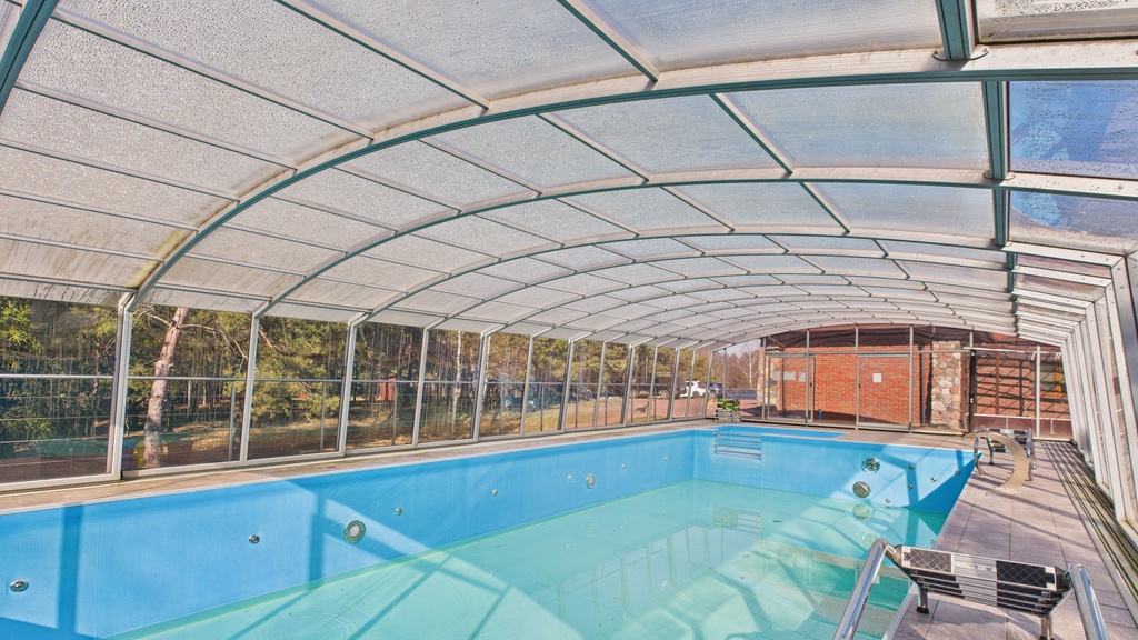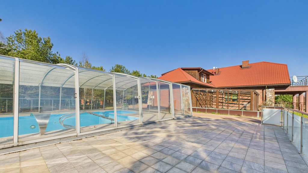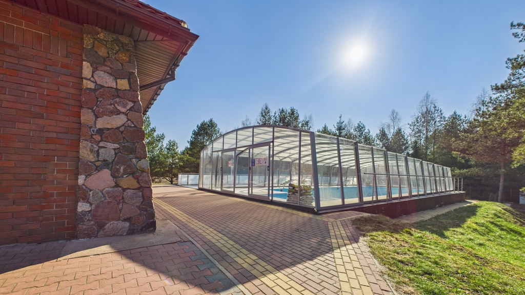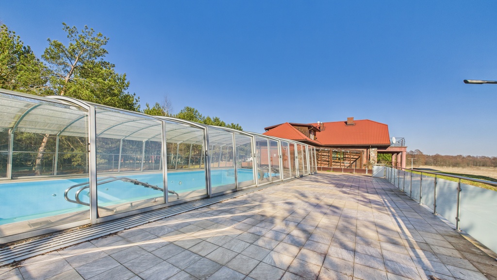 Dodatkową atrakcją jest podgrzewany i zadaszony basen o wymiarach 14x6 m oraz brodzik dla najmłodszych, przy którym mieści się duży słoneczny taras z leżakami.