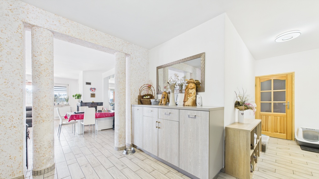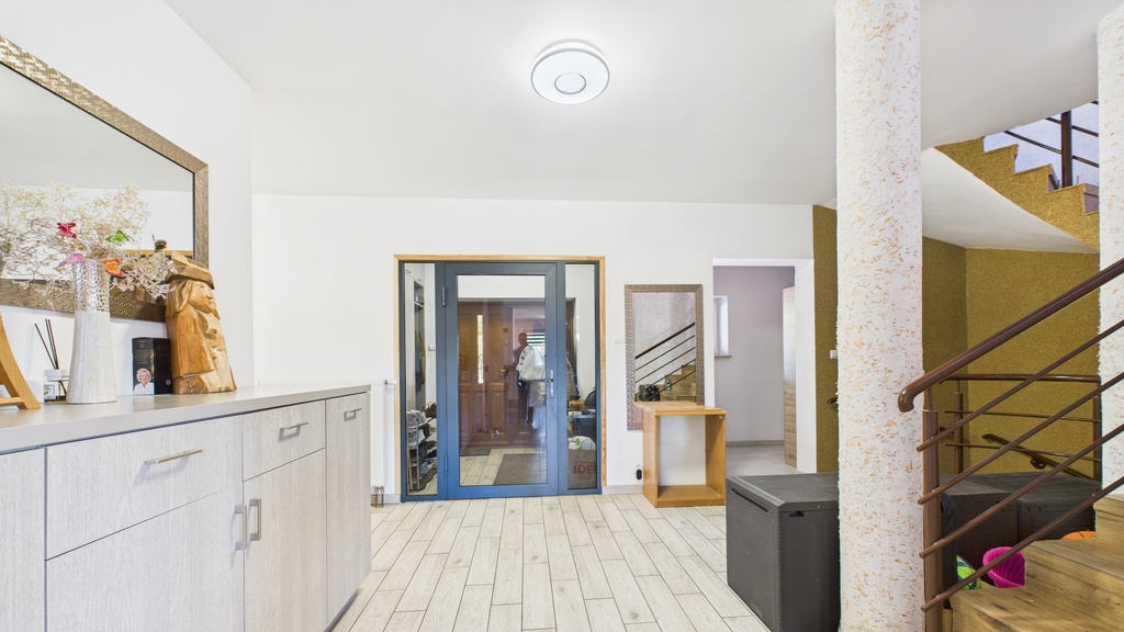 - hol z wiatrołapem i schodami na poddasze i do piwnicy