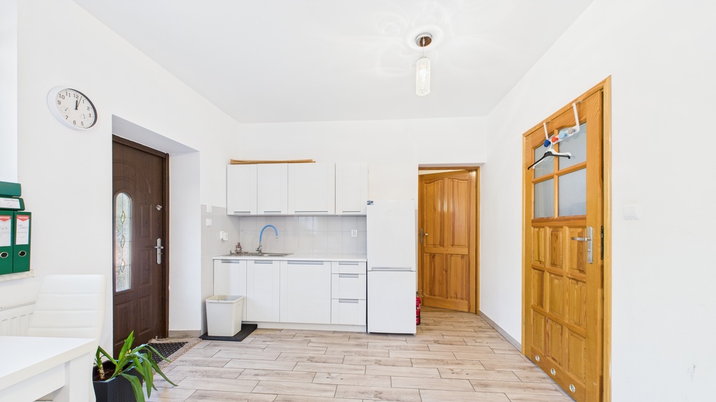- pokój przejściowy ze schodami na parter i aneksem kuchennym,