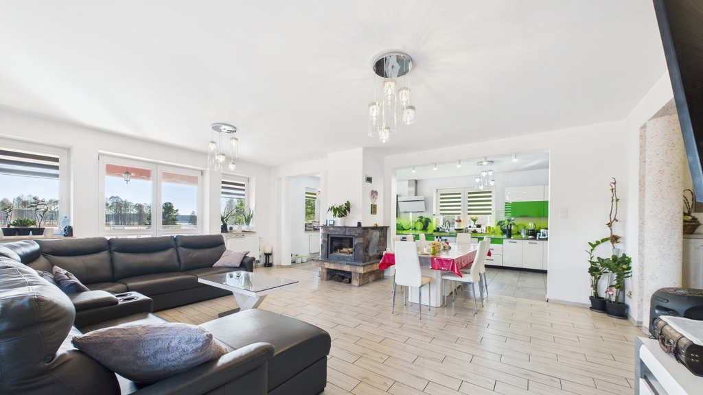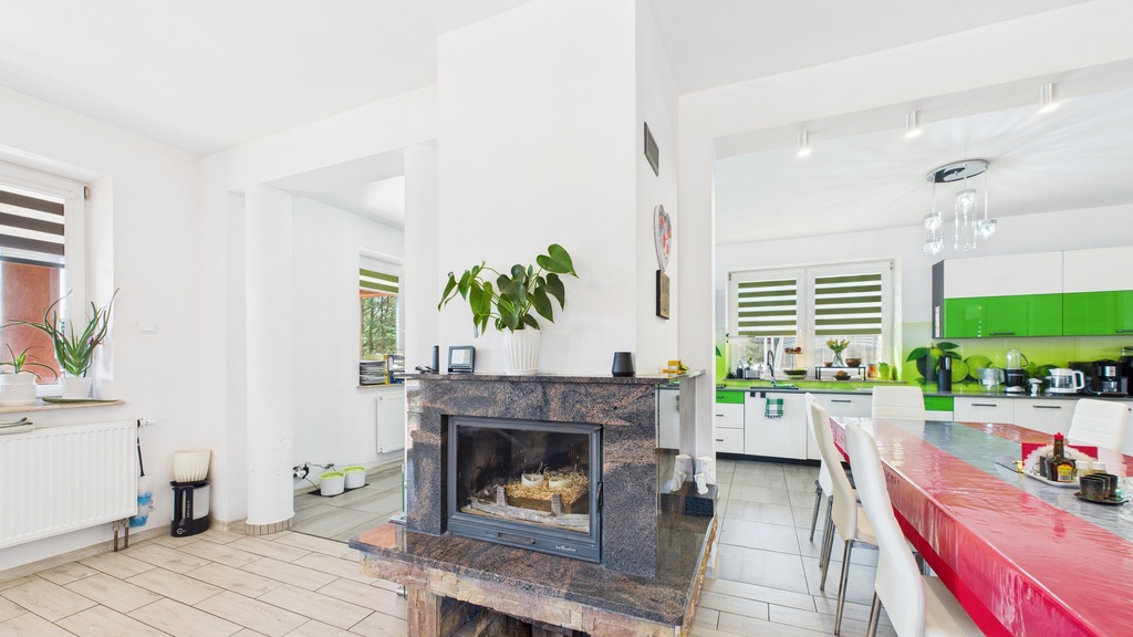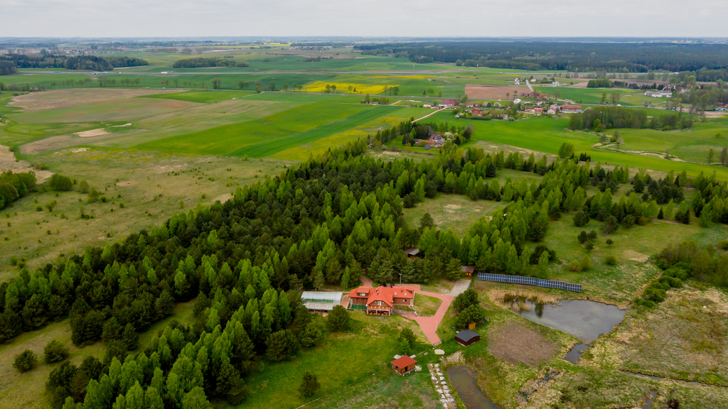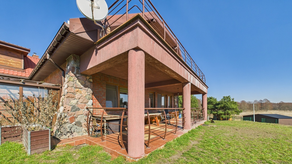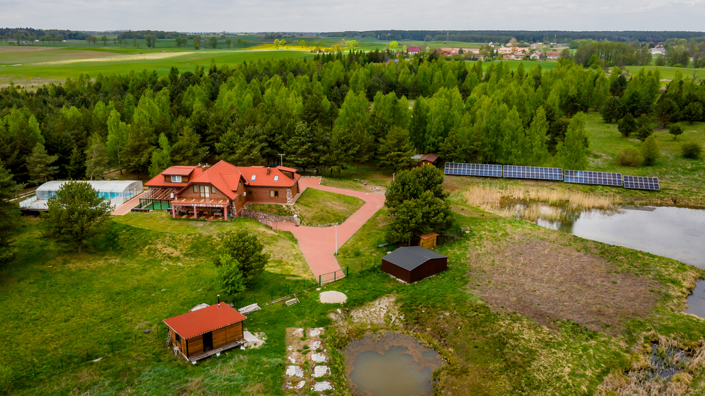 Na terenie działki zlokalizowana jest przydomowa oczyszczalnia ścieków oraz panele fotowoltaiczne o łącznej mocy ok. 40kW