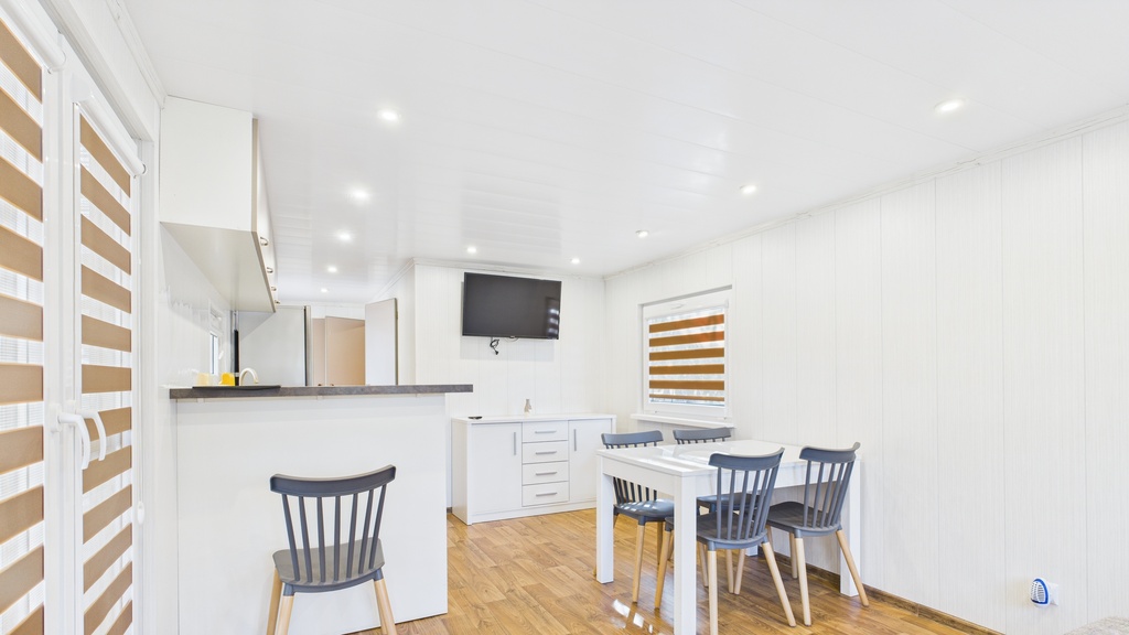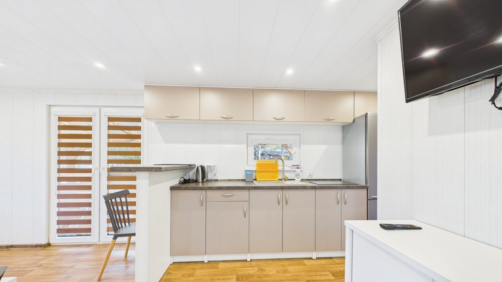 ! Gotowiec inwestycyjny ! Obecnie Gościom zapewniany jest pobyt w nowych, 4-6-osobowych domkach typu holenderskiego, w pełni wyposażonych: dwie sypialnie, łazienka, salon z aneksem kuchennym (tv, lodówka, indukcja, czajnik, mikrofalówka i wszystkie niezbędne naczynia do przygotowania posiłków) oraz zadaszony taras.