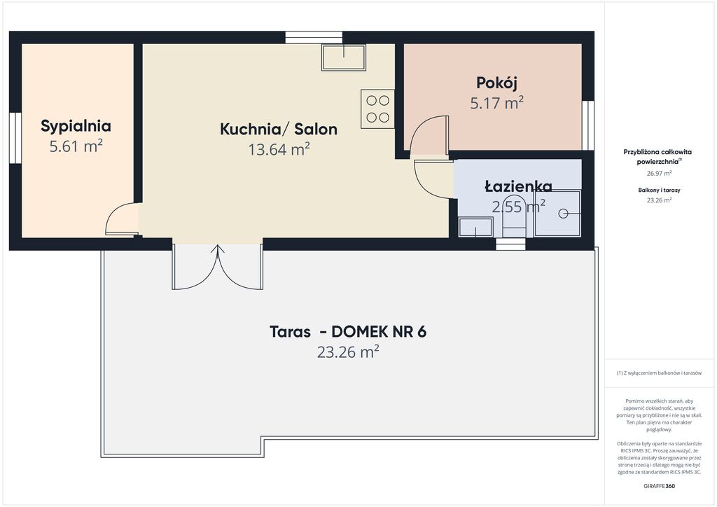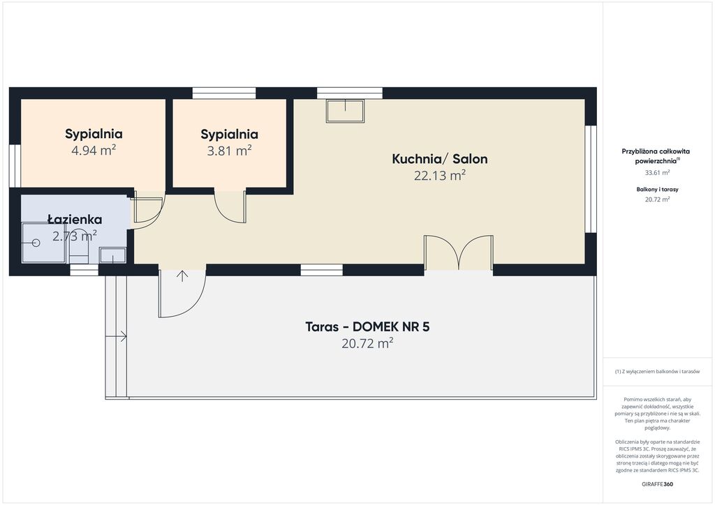 - 3 pokoje (w tym jeden z aneksem kuchennym)