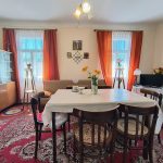 Drewniane podłogi oraz okna zachowały swój pierwotny charakter, dodając wnętrzu niepowtarzalnego klimatu.