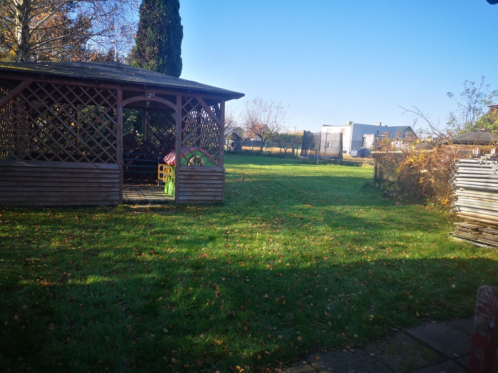 Działka 1788 m2, płaska, wjazd z asfaltowej ulicy Spokojnej. Na działce oczko wodne, w najgłębszym miejscu ok 2m, altana, drzewka owocowe.