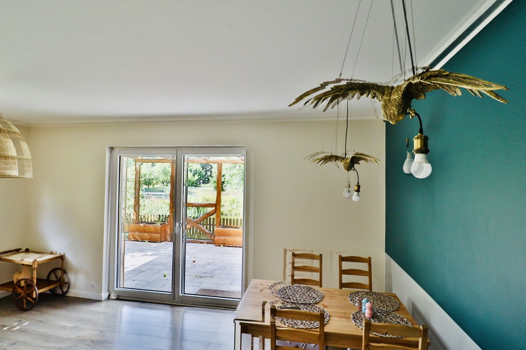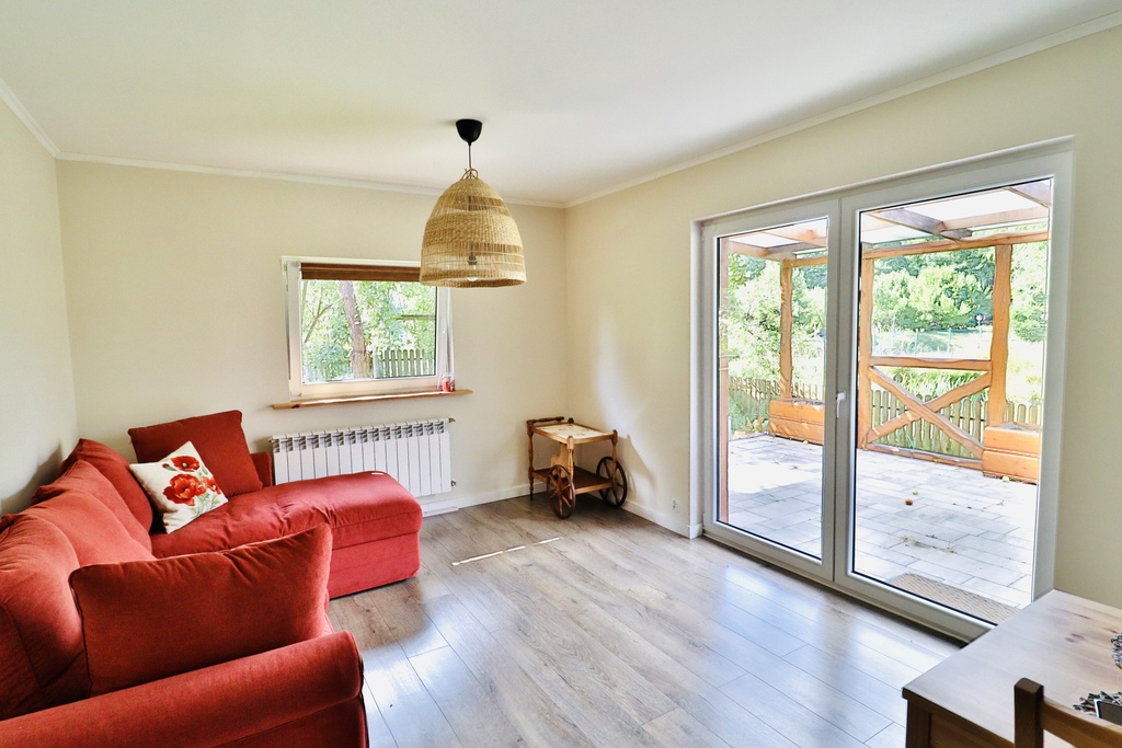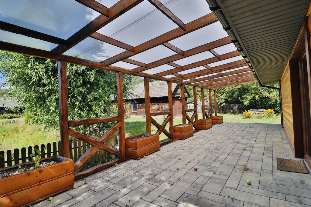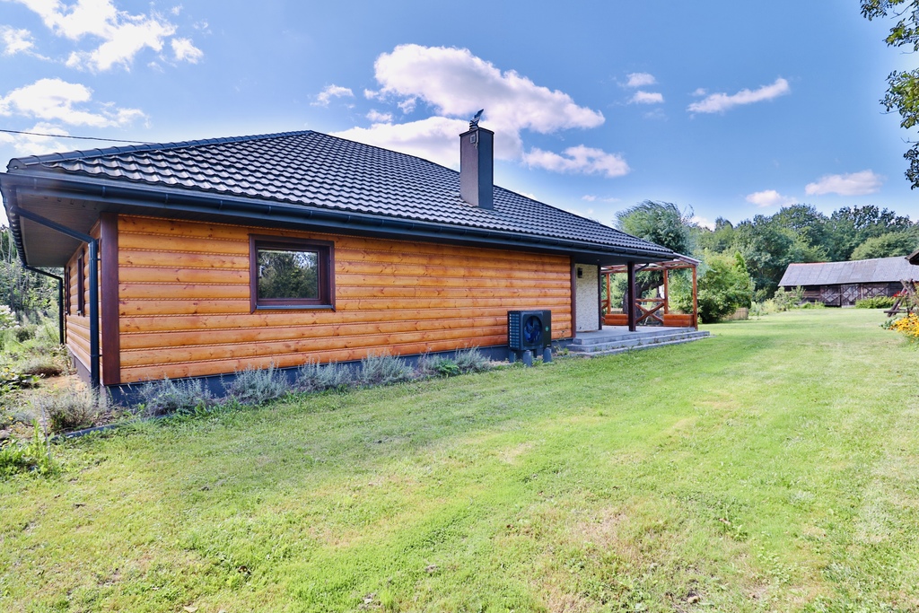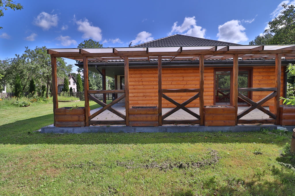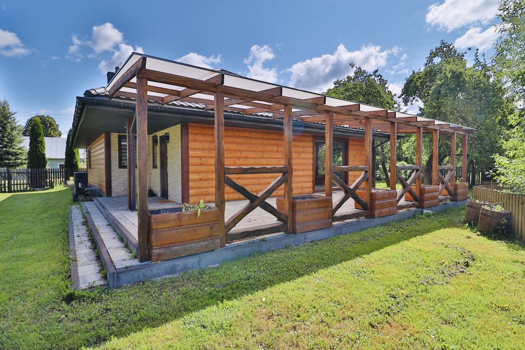 Dom jednorodzinny: 138 m², całoroczny, z wykończeniami z rzeźbionego drewna sprowadzonego z polskich gór.