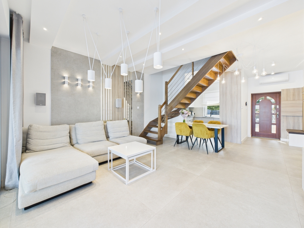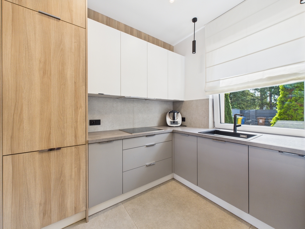 Pomieszczenia są klimatyzowane, posiada ogrzewanie podłogowe. Meble zostały wykonane na zamówienie, w zabudowie pod wymiar. Cały sprzęt jak i materiały użyte do wykończenia są najwyższej jakości.