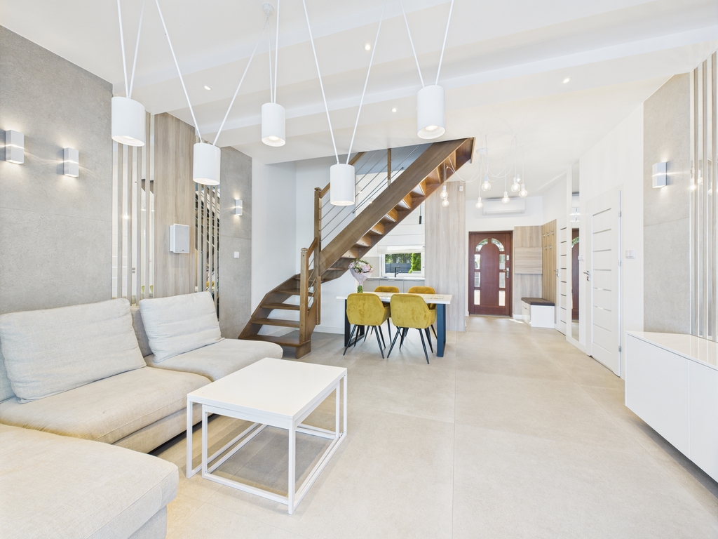 Dom wolnostojący z bezpośrednim dostępem do jeziora, wykończony w wysokim standardzie, o powierzchni użytkowej 105 m2 + ogród zimowy 46 m2, położony na działce o powierzchni 550 m2, w bardzo dobrze skomunikowanej, a zarazem spokojnej lokalizacji.