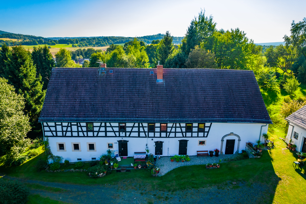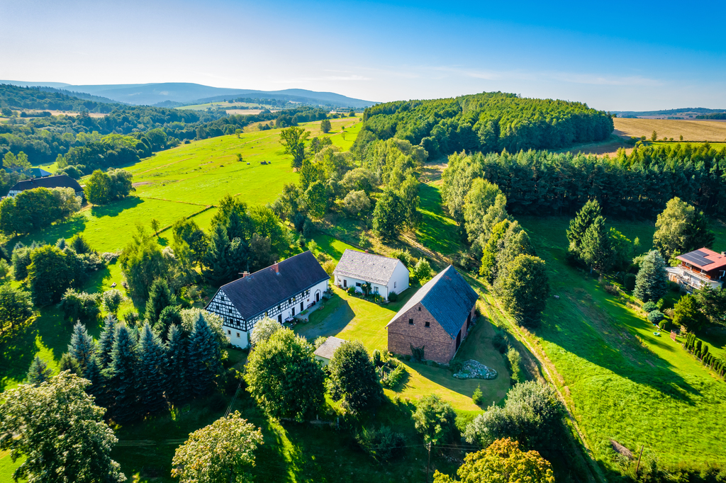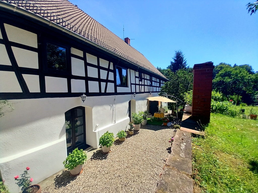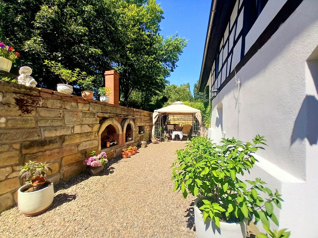 Prezentowana posiadłość to klimatyczne miejsce z ponad 200 letnią historią znajduje się na hektarowej działce i nie ma zbyt wielu sąsiadów. Cała posiadłość położona jest na wzniesieniu co jest jej niewątpliwym atutem, gdyż z góry możemy obserwować nie tylko naturę, kontemplować ciszę i świergot ptaków ale i zobaczymy ze wzgórza Karkonosze i królową Śnieżkę.