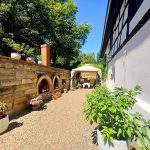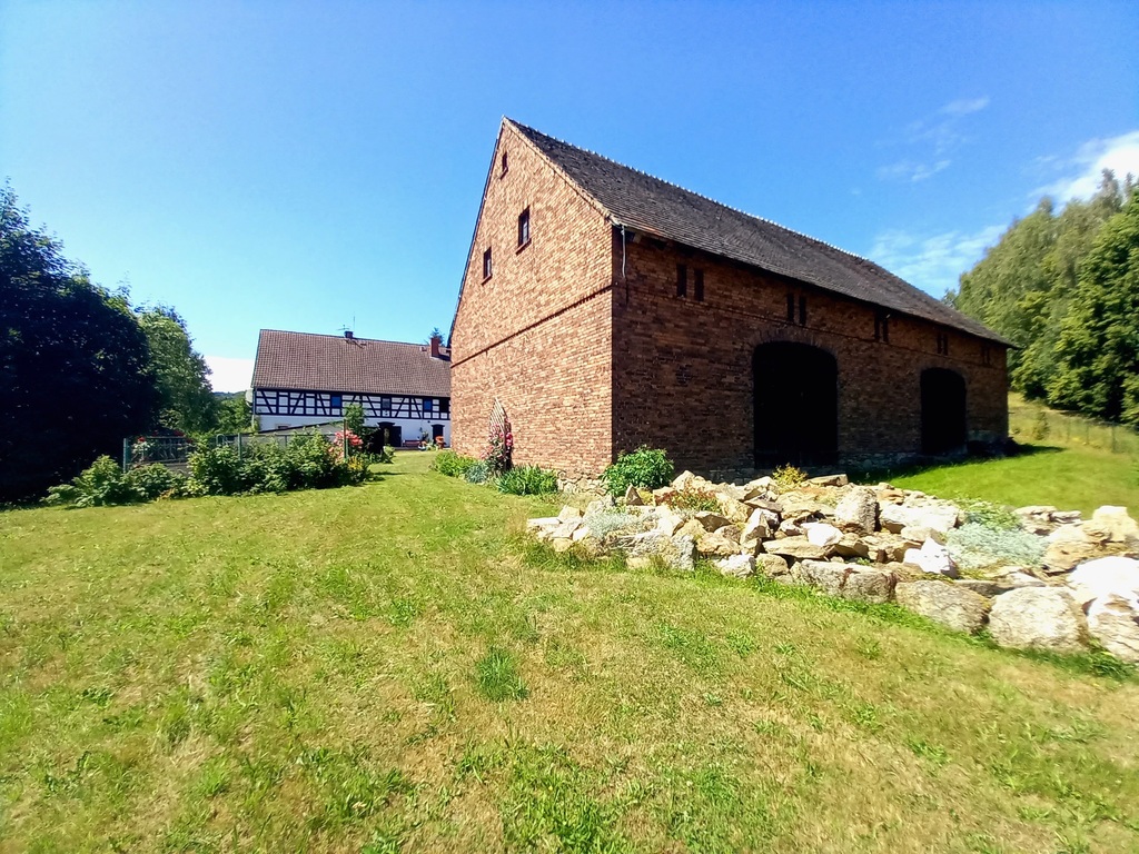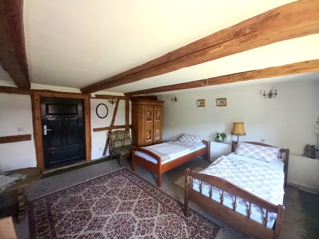 3. Trzeci budynek to ogromna stodoła o powierzchni 248 m2, która obecnie pełni funkcję Sali rekreacyjnej dla gości oraz garażu. Budynek częściowo podpiwniczone. Sam w sobie przepiękny, wewnętrzna konstrukcja zachwyca i nie ma opcji aby tam się na chwilę nie zatrzymać. W upalne dni cudowne miejsce do medytacji czy po prostu książki, lampki wina.