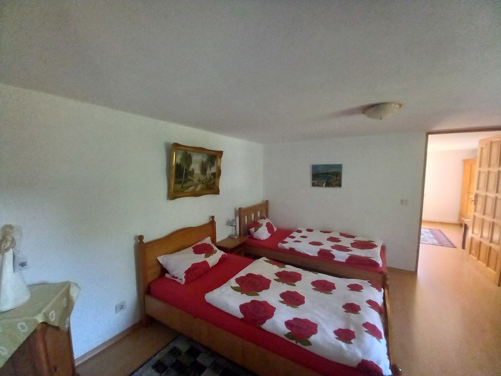 - druga kondygnacja: hall, łazienka, apartament dwupokojowy z łazienką, apartament trzypokojowy z łazienką, pokój 2 osobowy, pokój 3 osobowy, pokój 3 osobowy, kuchnia, schody na strych.