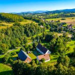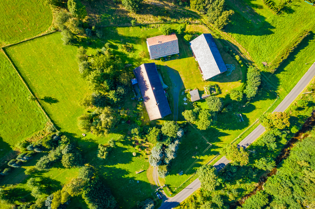 Budynki położone są na wzgórzu a prowadzi do nich leśna ścieżka za którą dopiero zobaczymy to urocze siedlisko. To miejsce wymarzone dla osób pragnących spokoju i ciszy w otoczeniu natury, natomiast sama posiadłość jest tak położona, że nie ma problemu z dojazdem czy do miasta czy w góry. Wygodny parking zaraz za bramą wjazdową za to z tyłu budynku zaczyna się magiczna kraina pełna lasów, zakamarków i widoków na góry.