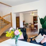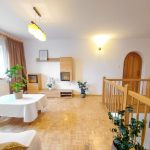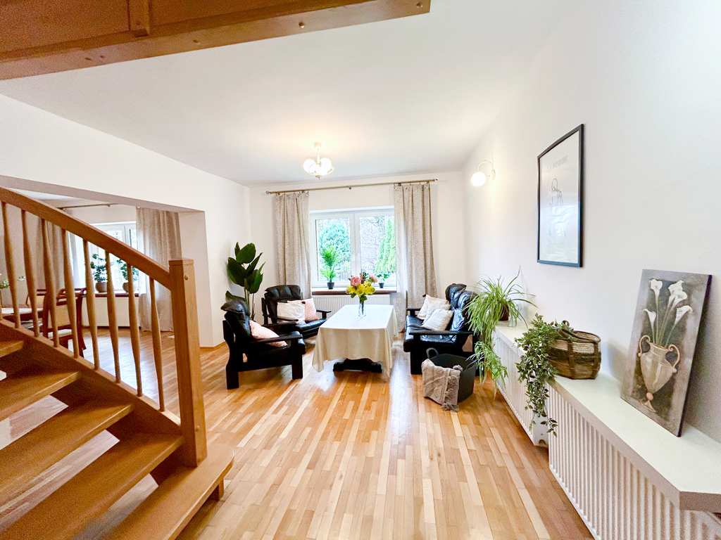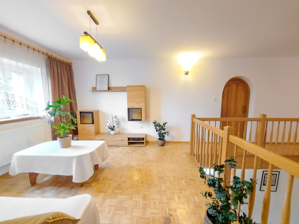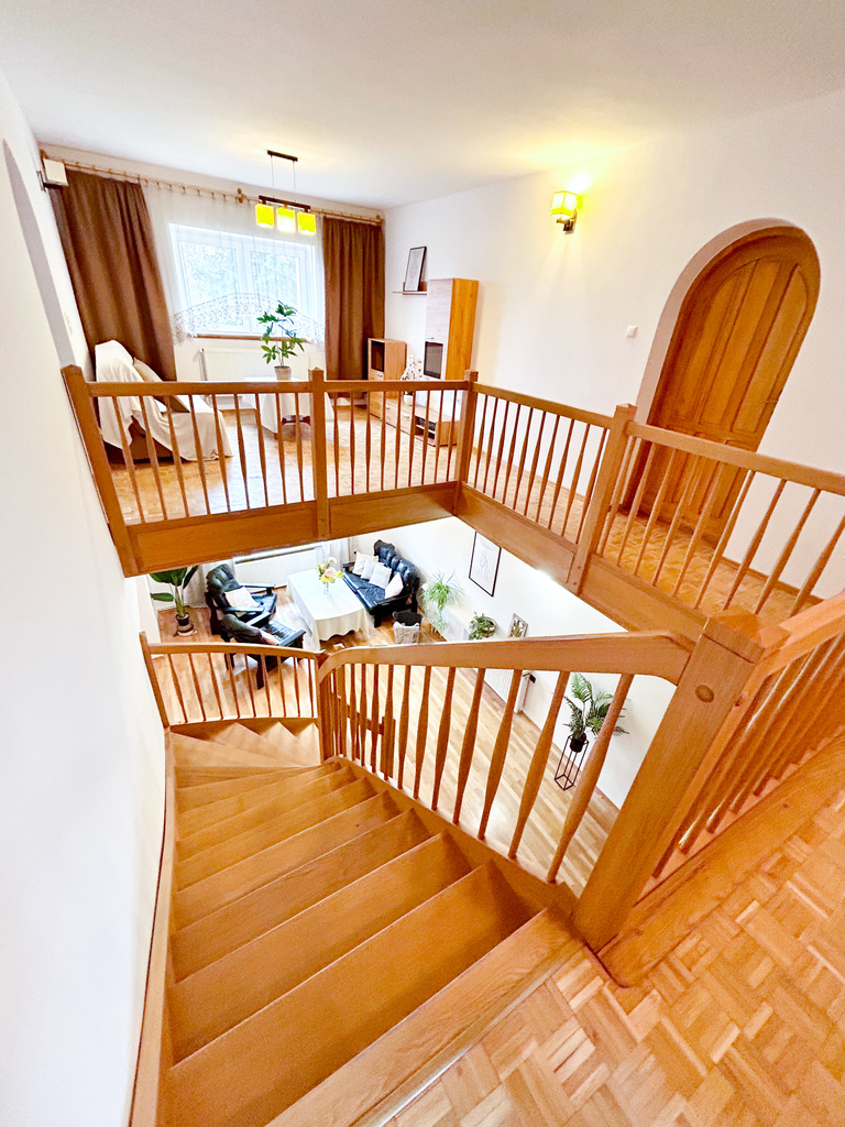 Podział domu jest pionowy i można tutaj znaleźć dwa oddzielne mieszkania, które oczywiście łączą się i mogą stanowić przestronną i niekrępującą całość.