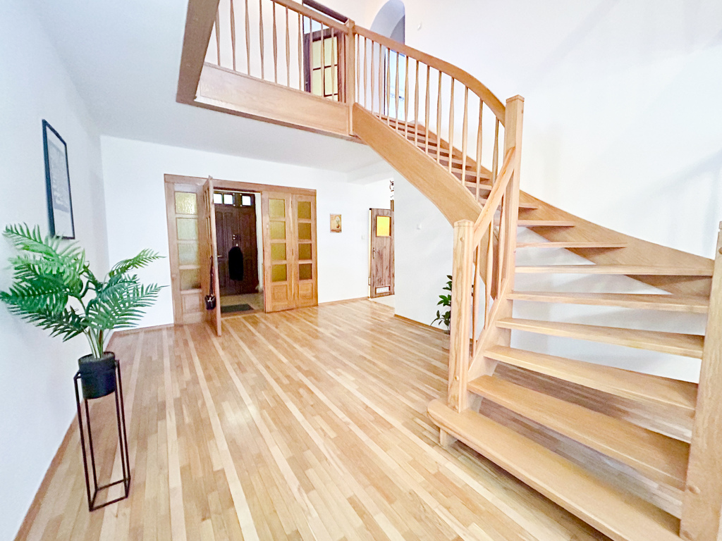 PÓŁNOC Nieruchomości Jelenia Góra prezentuje Państwu bardzo ciekawy i zadbany duży dom w Świerzawie niedaleko Jeleniej Góry.Świerzawa to niewielka miejscowość w powiecie Złotoryja, 14 km od Jeleniej Góry. Lokalizaja pozwala na szybkie przemieszczanie się w kierunku Jeleniej Góry jak i Legnicy. Dom został wyremontowany ze starej poniemieckiej zabudowy w roku 1983 a potem rozbudowany w 1993 roku. Podczas remontu drewniane stropy zamieniono na betonowe, zrobiono nowy dach z dachówki karpiówki, wstawiono okna PCV i zaaranżowano wewnętrzną przestrzeń na dwie części - jedną mieszkalną i drugą mieszkalno-usługową. Dom został ocieplony, zaizolowany. W piwnicach zainstalowano piec na ekogroszek, alternatywnie też zrobiono instalacje pod ogrzewanie gazowe.