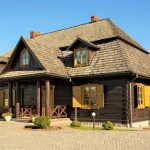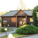 DOM MIESZKALNY o powierzchni 180m2 w całości wykonany z brusów drewnianych, kryty modrzewiowym gontem.