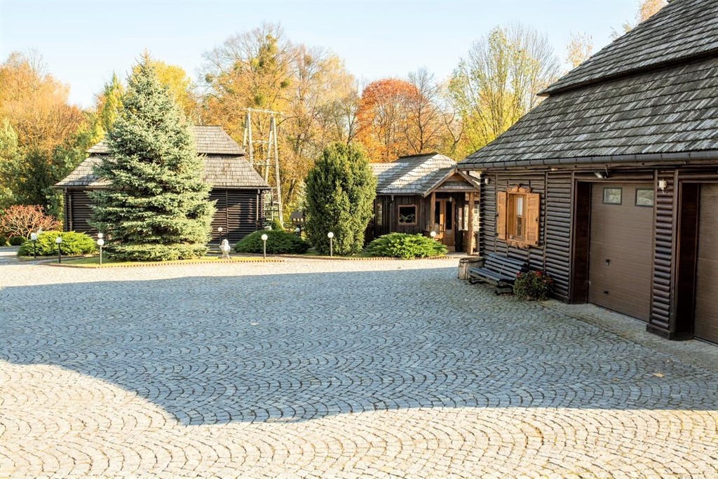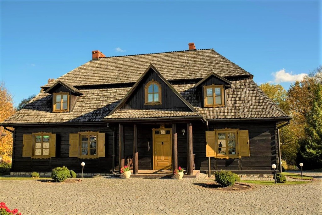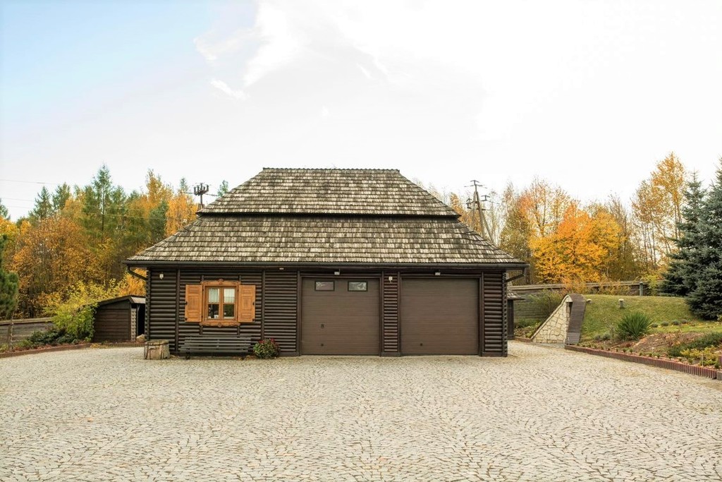 Prezentowana posiadłość, została zaprojektowana w nawiązaniu do staropolskiej historii tej krainy, z zachowaniem regionalnej tradycji, historii i z użyciem naturalnych materiałów pochodzących od okolicznych dostawców. Nieruchomość jest położona na skraju lasu, po części będącego jej częścią. Wszystkie zabudowania znajdujące się na działce prezentują jednolity styl, dodając unikalności temu miejscu.