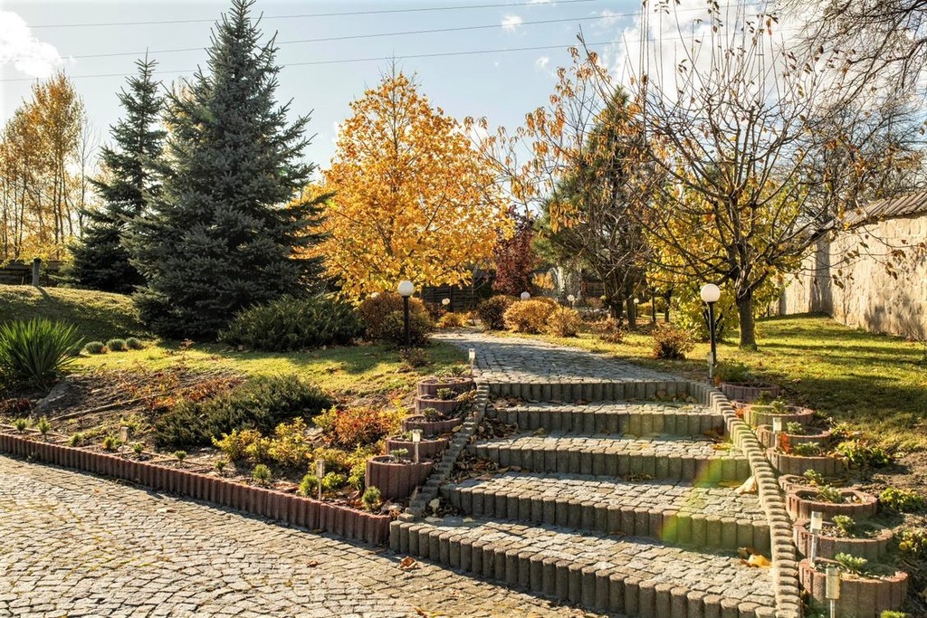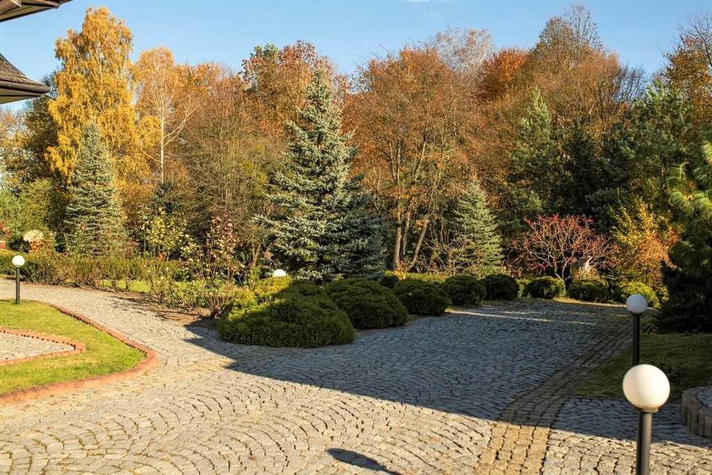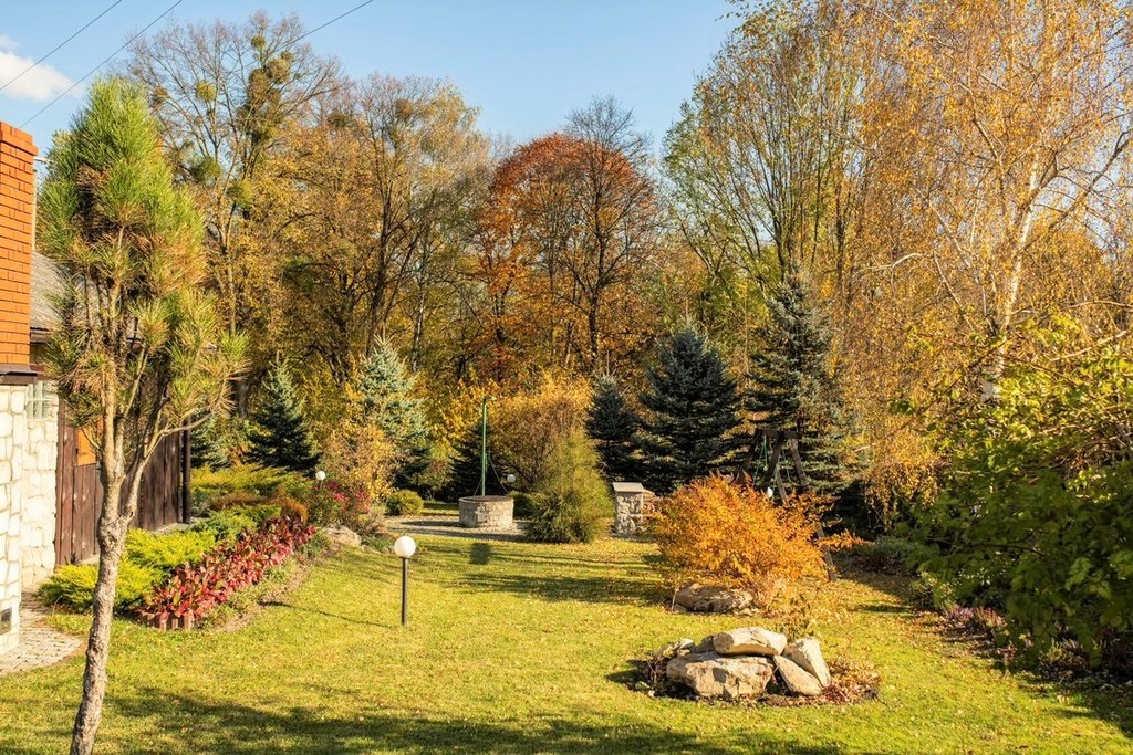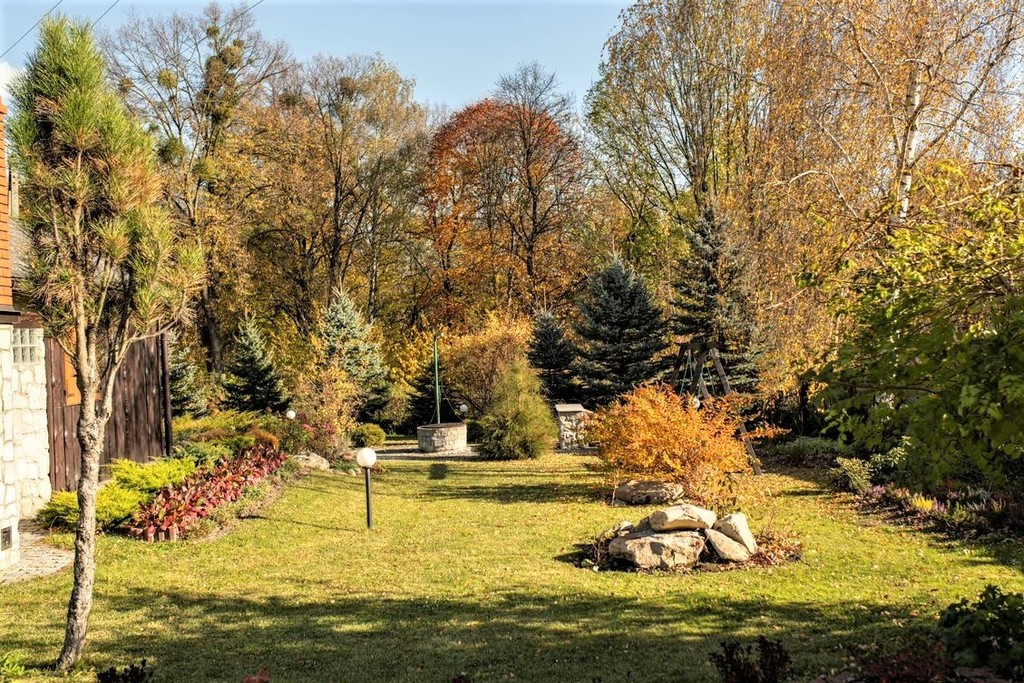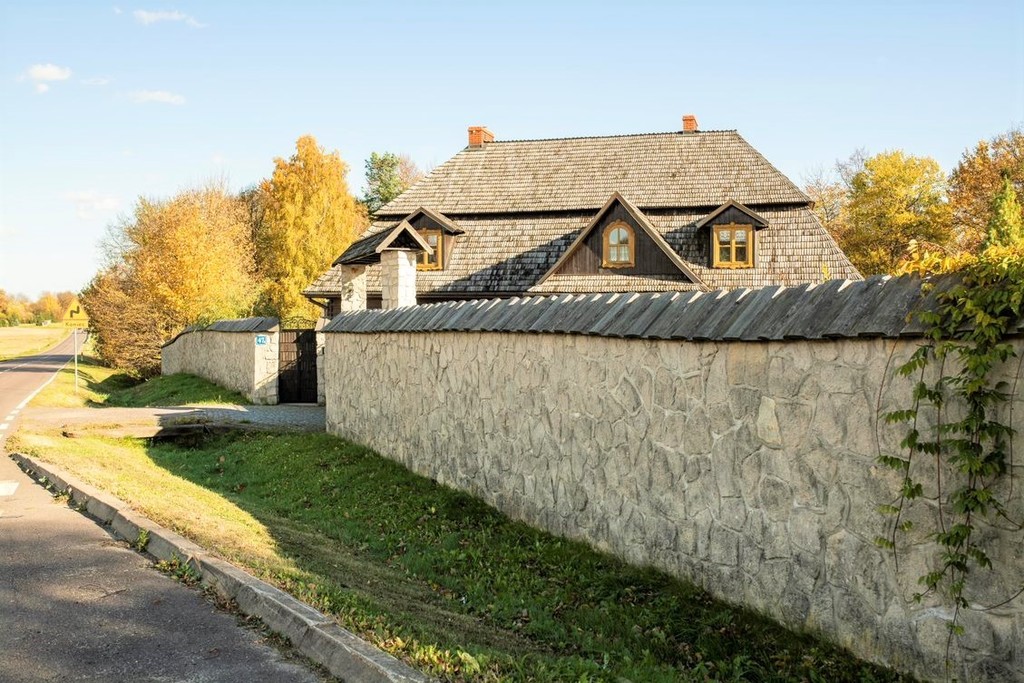 Od strony graniczącej z drogą zbudowano wysokie, kamienne ogrodzenie. Imponująca brama otwierana jest automatycznie. Bezcenna wartość dla każdego, kto ceni swoją prywatność.
