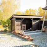 Znajdziemy tu składzik na drewno do kominka, składzik na narzędzia ogrodowe, podręczny warsztat oraz pomieszczenie na składowanie mebli ogrodowych.