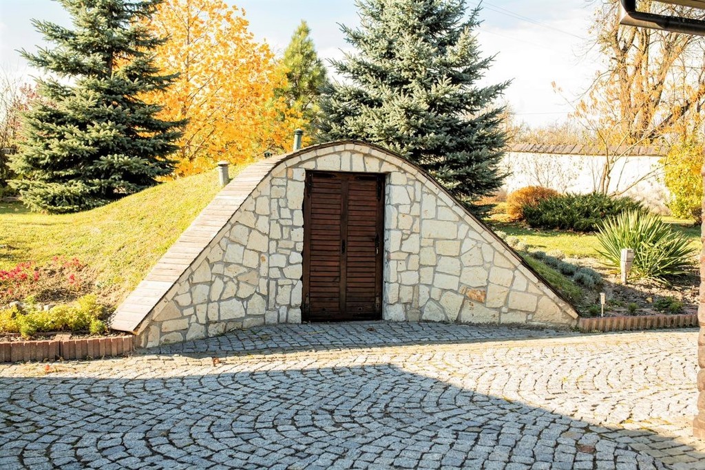 Piwnica z kamienia (z pozyskiwanej w pobliskich kamieniołomach opoki) tzw. loszek na przechowywanie przetworów oraz wina