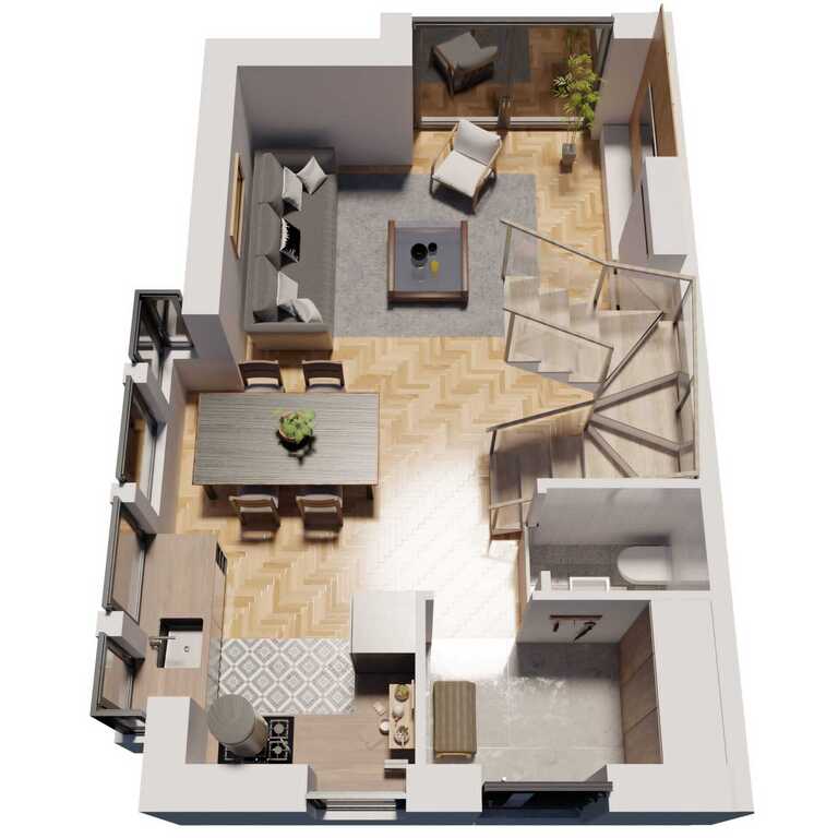 • Przemyślany Układ Wnętrz: Na parterze znajdziesz funkcjonalny wiatrołap, toaletę oraz przestronny salon z aneksem kuchennym, idealny do spędzania czasu z rodziną i przyjaciółmi. Poddasze to strefa prywatna, gdzie czekają na Ciebie dwie przytulne sypialnie, praktyczna garderoba oraz komfortowa łazienka.