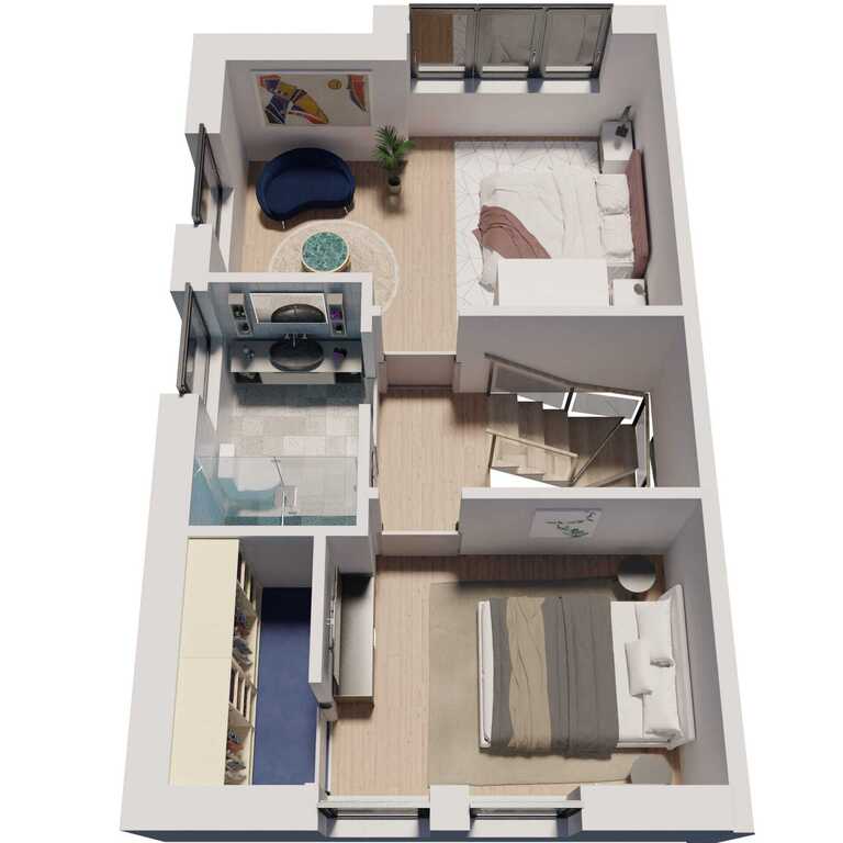 Przedstawione wizualizacje i grafiki mają charakter wyłącznie poglądowy i stanowią wyłącznie materiał pomocniczy, ułatwiający zorientowanie się w ogólnym wyglądzie oferowanej nieruchomości.
