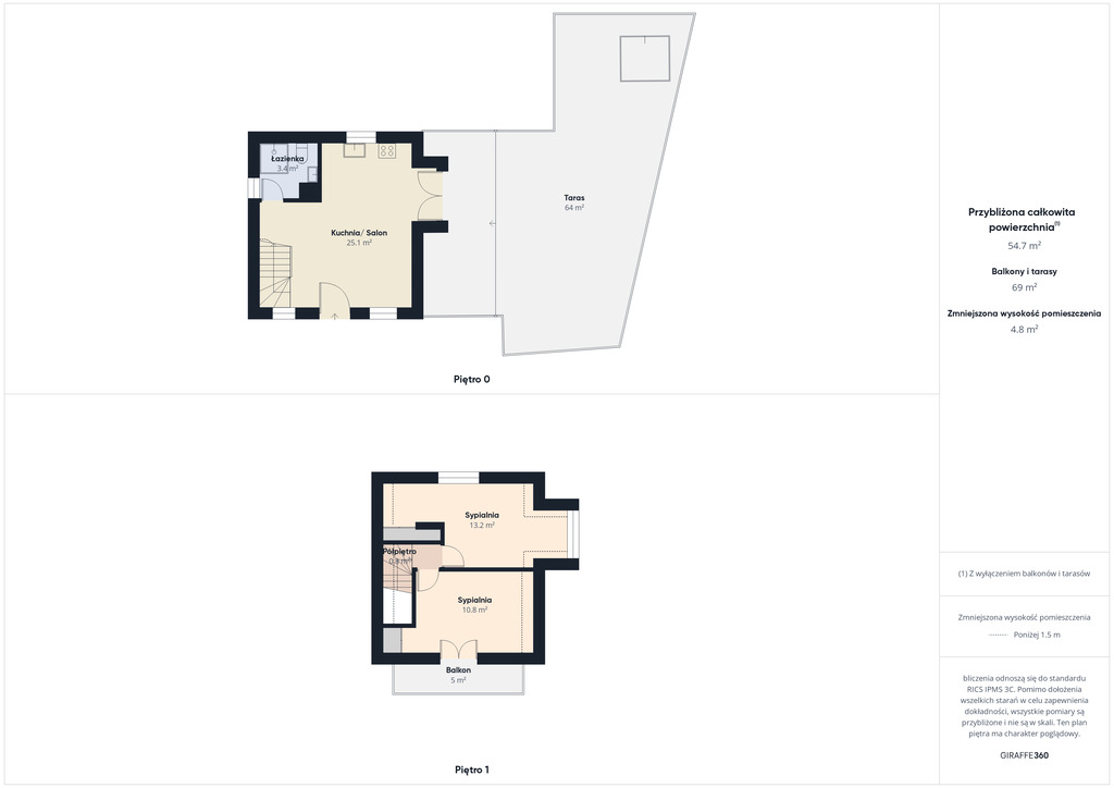 - 2 sypialnie, w tym jedna z balkonem 5 m² i widokiem w stronę Gorców,