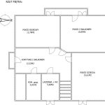 Piętro: pokój dziecka, pokój biurowy, pokój z balkonem, łazienka, pomieszczenie gospodarcze i przestronny korytarz z balkonem.