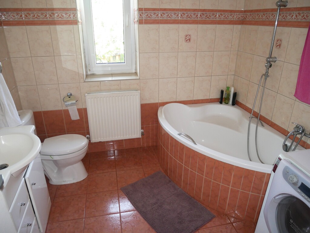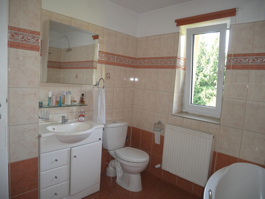 - Pomieszczenia przynależne: na parterze kotłownia, pomieszczenia gospodarcze, dodatkowa kuchnia i duży garaż.