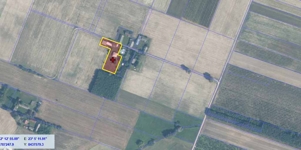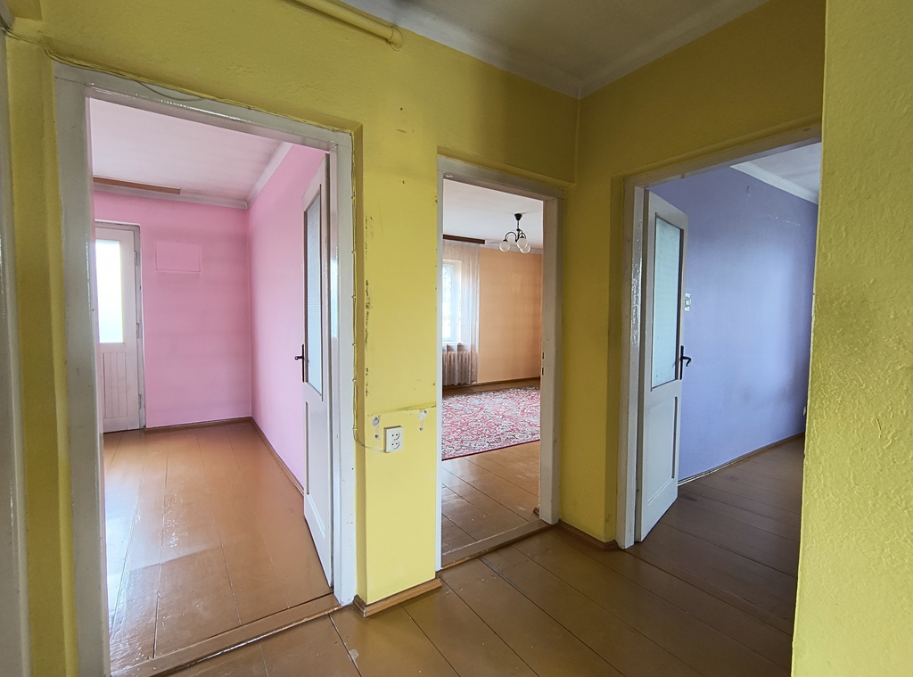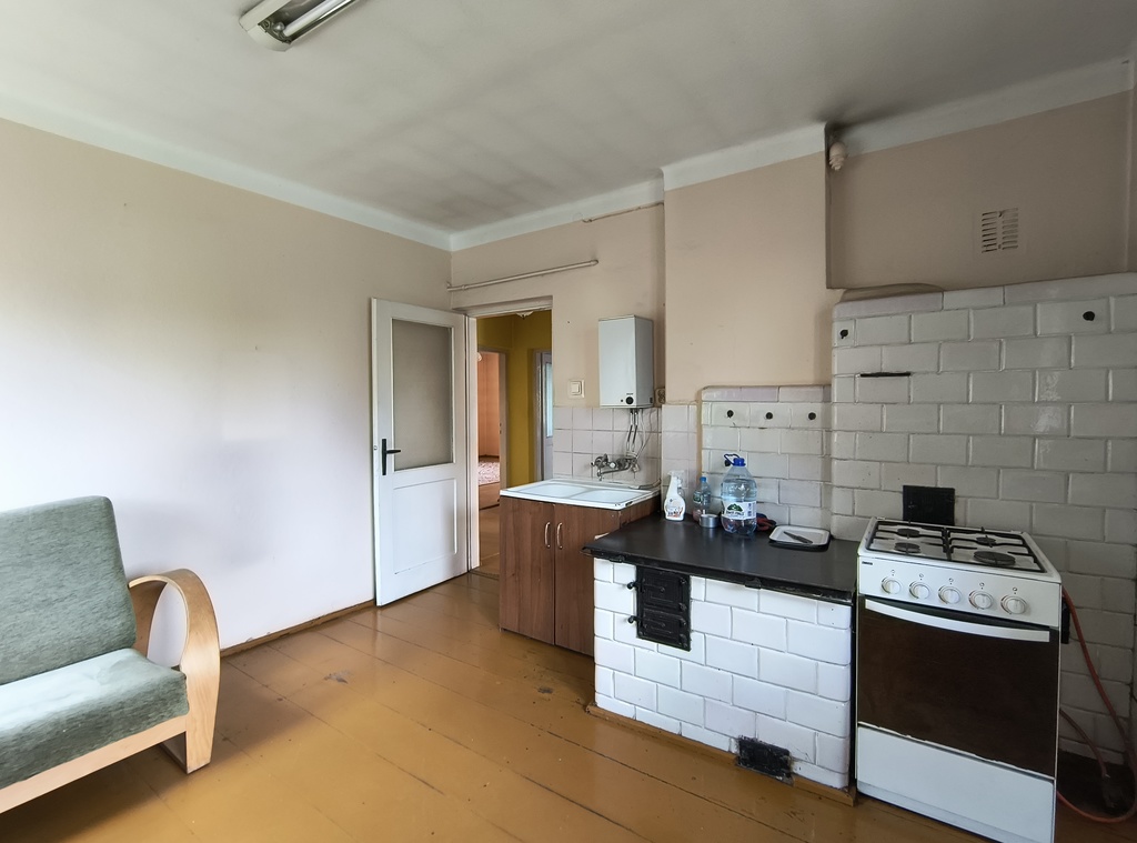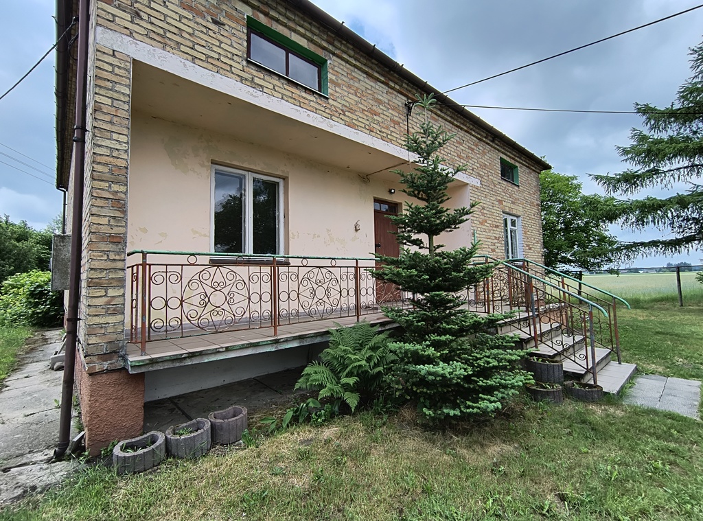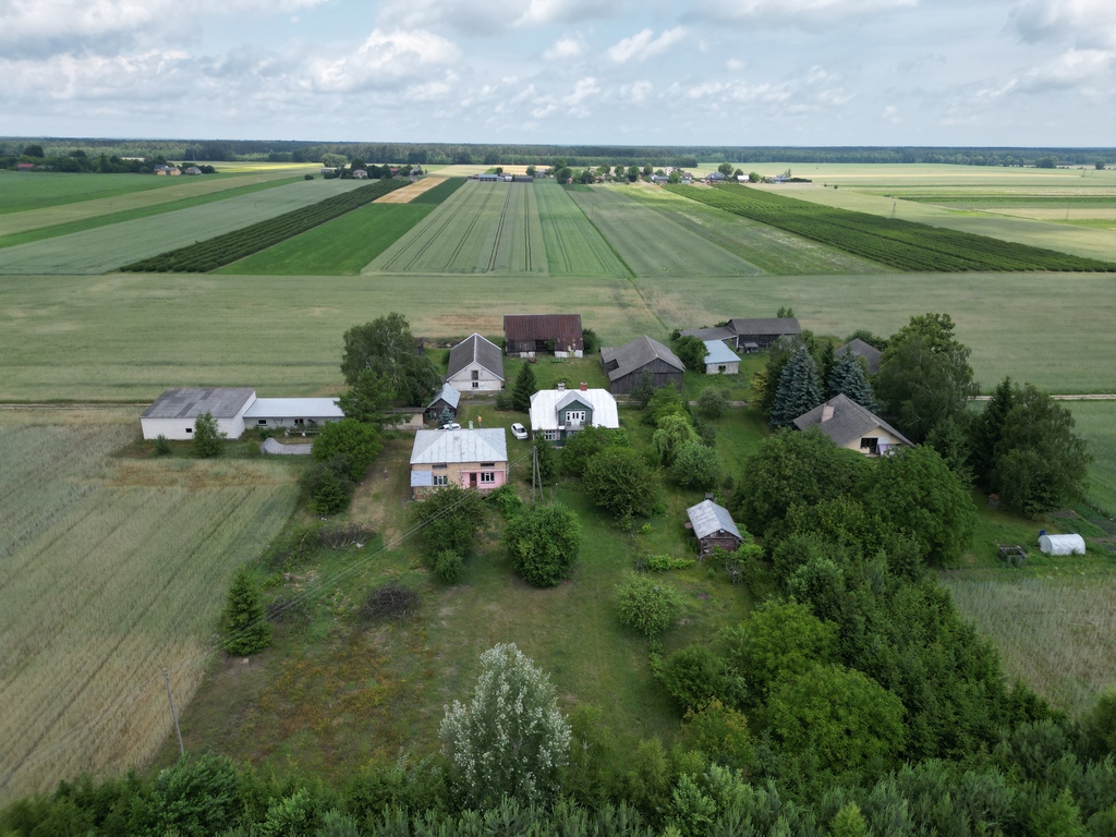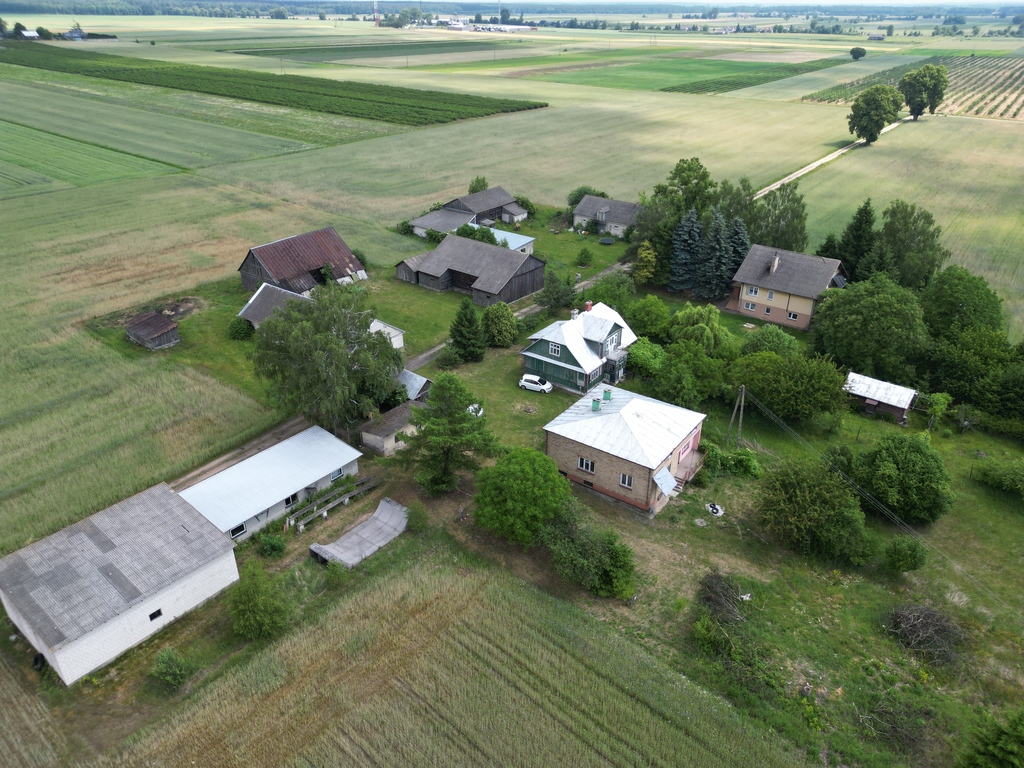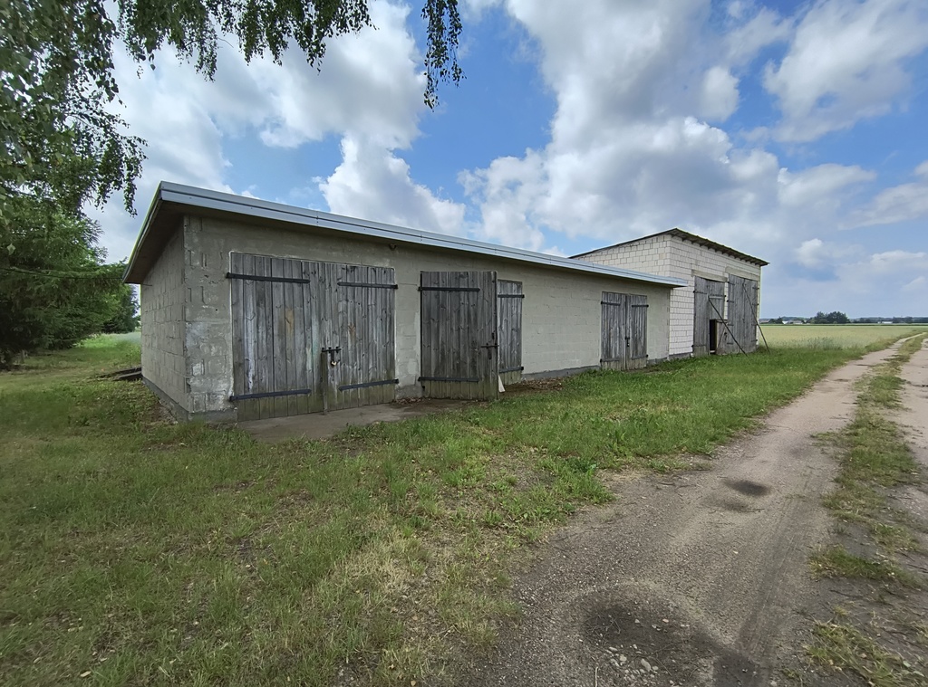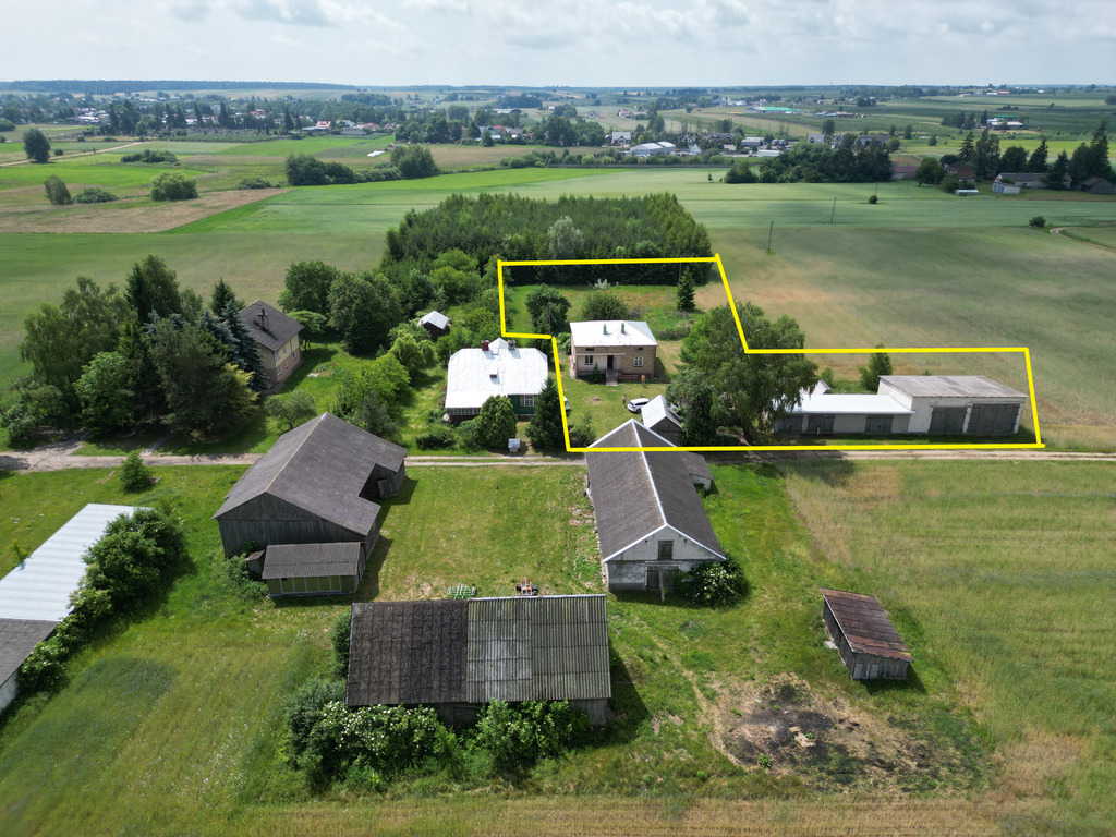 Na działce znajduje się dom o powierzchni 100 m2 + garaże na auta i sprzęt rolniczy