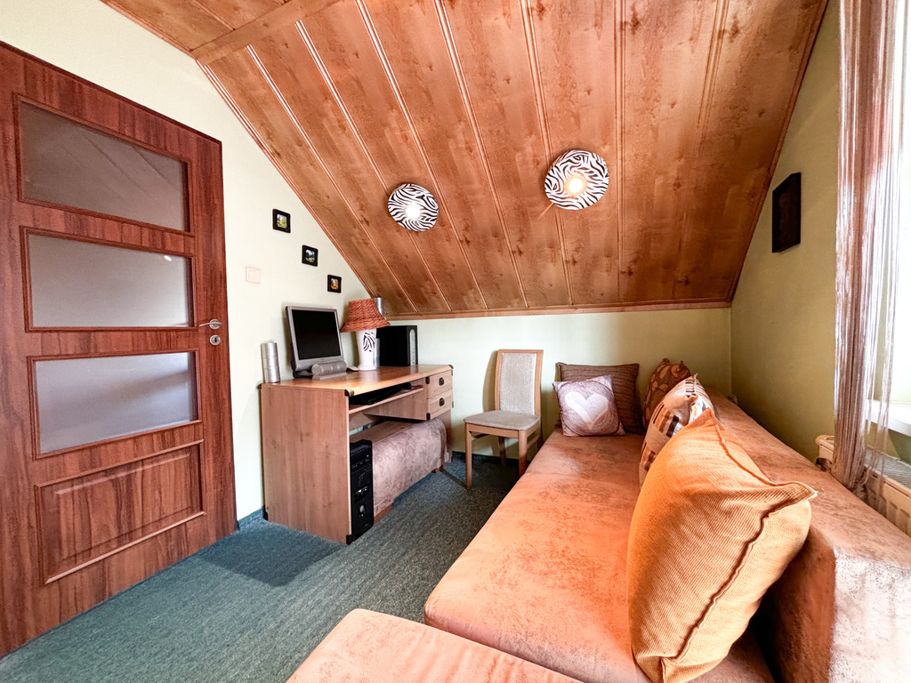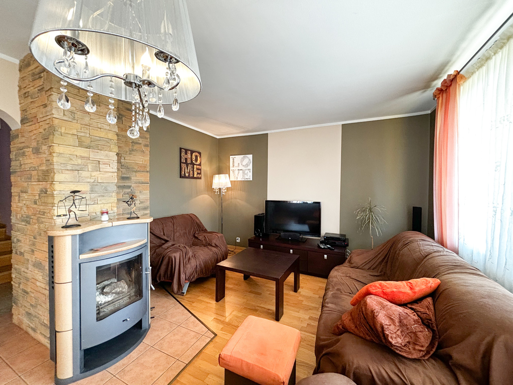 W salonie został zamontowany kominek opalany drewnem, co daje niepowtarzalny klimat zwłaszcza podczas długich, jesiennych wieczorów!
