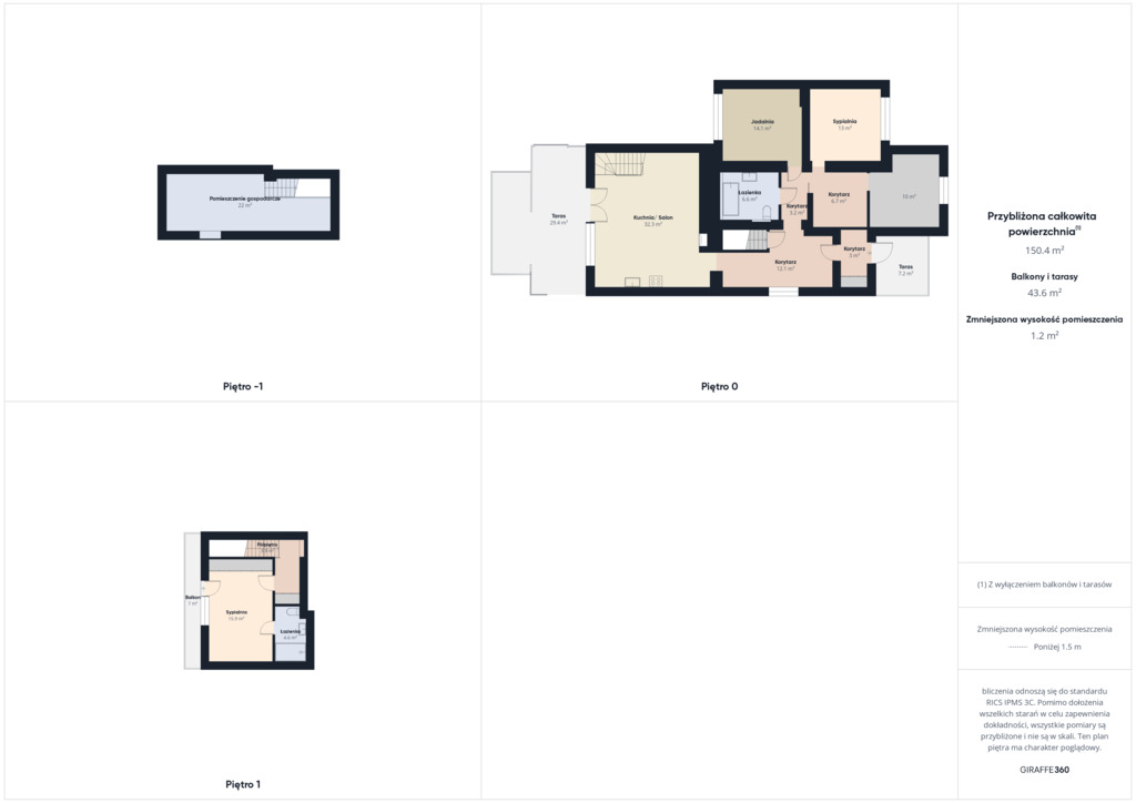 125,84 m² ( powierzchnia całkowita z piwnicą to 150,4m2), położony na działce