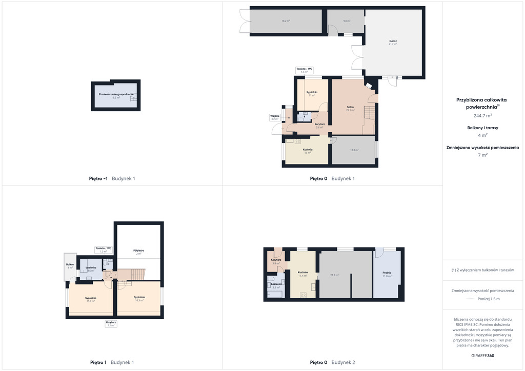 Powierzchnia całkowita domów wraz ze wszystkimi pomieszczeniami to aż 244 m2