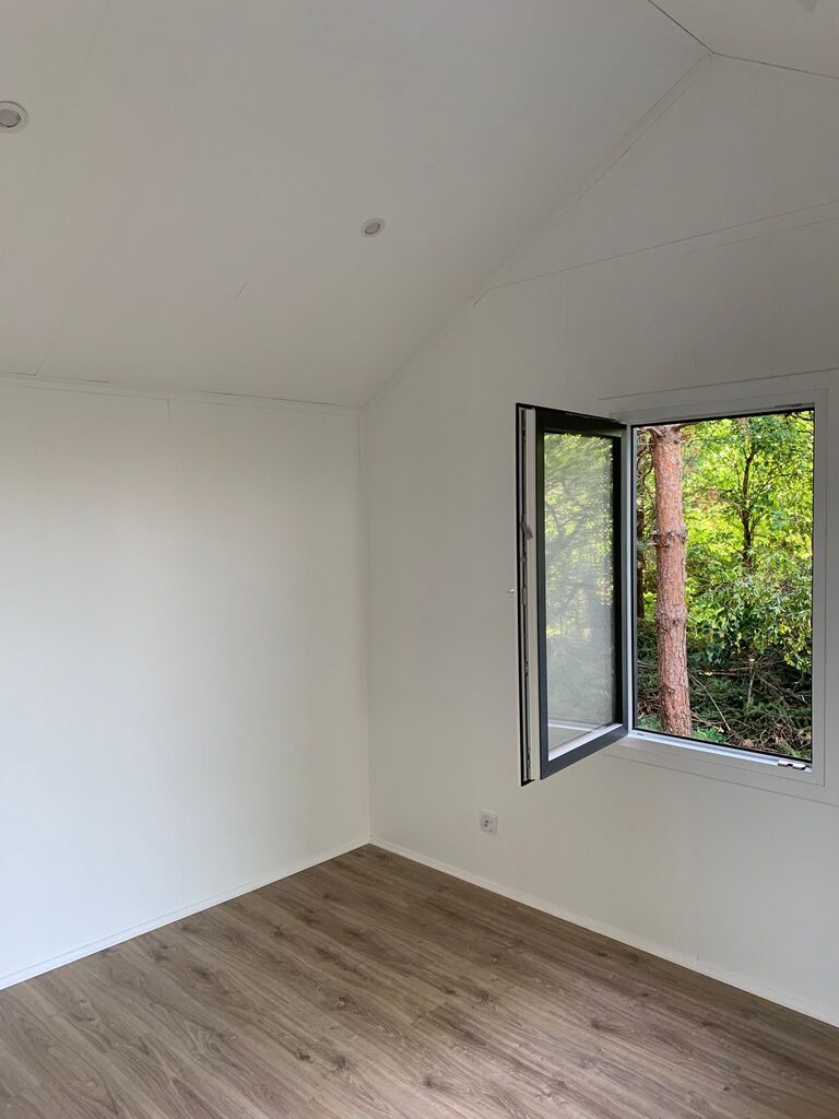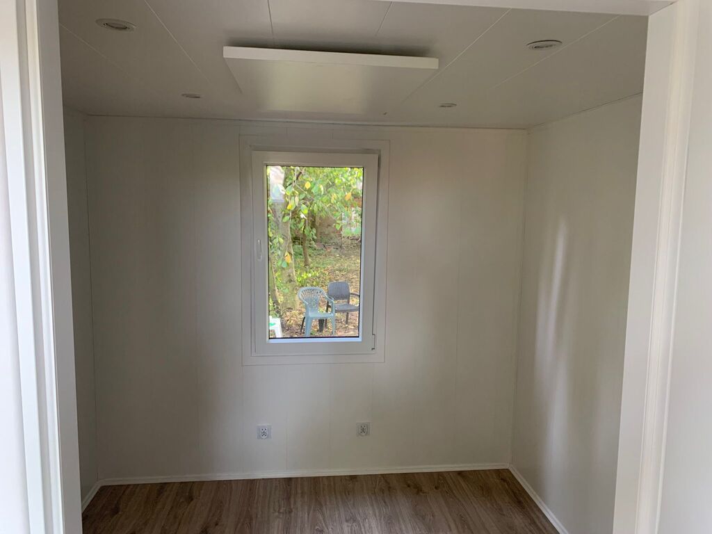 Na sprzedaż dom mobilny produkcji Meveline — powiększony model EVELIN7 o powierzchni użytkowej 48 m2 plus antresola 15 m2. Konstrukcja stalowa, wnętrze bez regipsów (łatwy transport i modyfikacje). Użytkowany minimalnie (głównie jako magazyn) przez około 2 lata; zdjęcia przedstawiają stan z pierwszego dnia postoju — wizualnie niemal bez zmian.