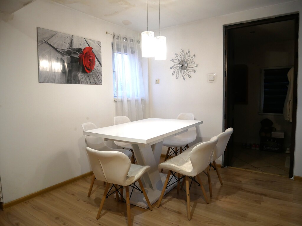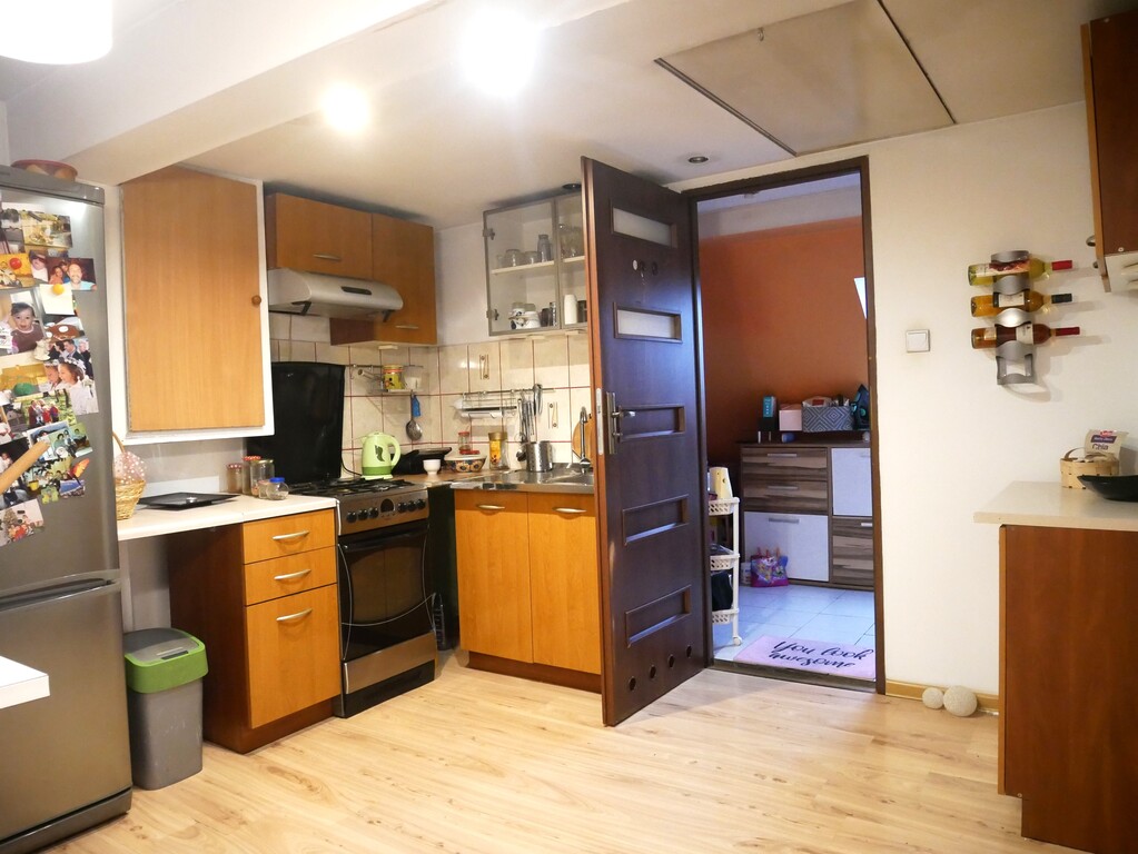 Dom posiada trzy niezależne lokale mieszkalne. Łącznie sześć pokoi, trzy kuchnie, trzy łazienki. Każdy lokal z osobnym bezkolizyjnym wejściem z zewnątrz.