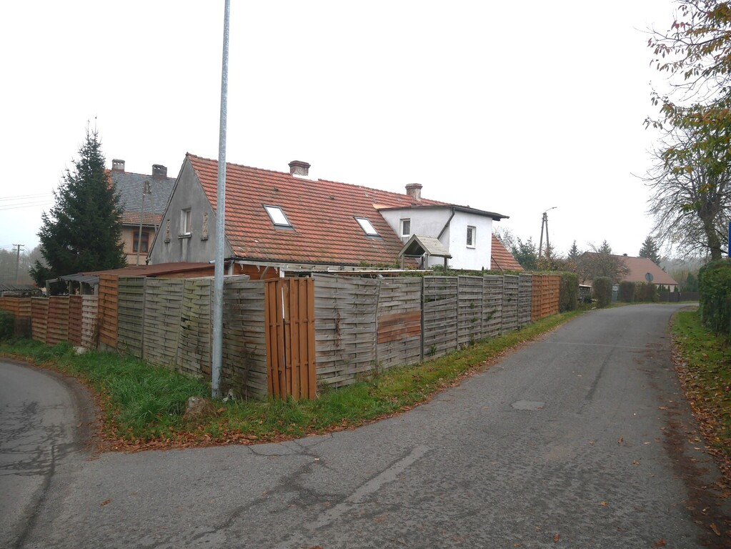 - Z boku budynku mieszkalnego dwa murowane wolnostojące budynki gospodarcze, pełniące obecnie funkcję garaży.