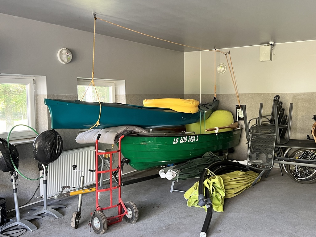 Budynek rekreacyjno-garażowy (200 m²) – absolutny unikat: • Garaż (100 m²) – pomieści 4 samochody, łódkę, quady i narzędzia