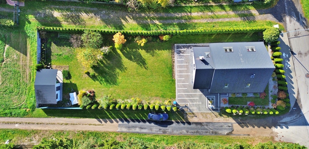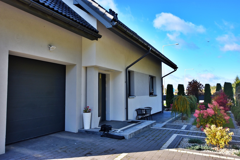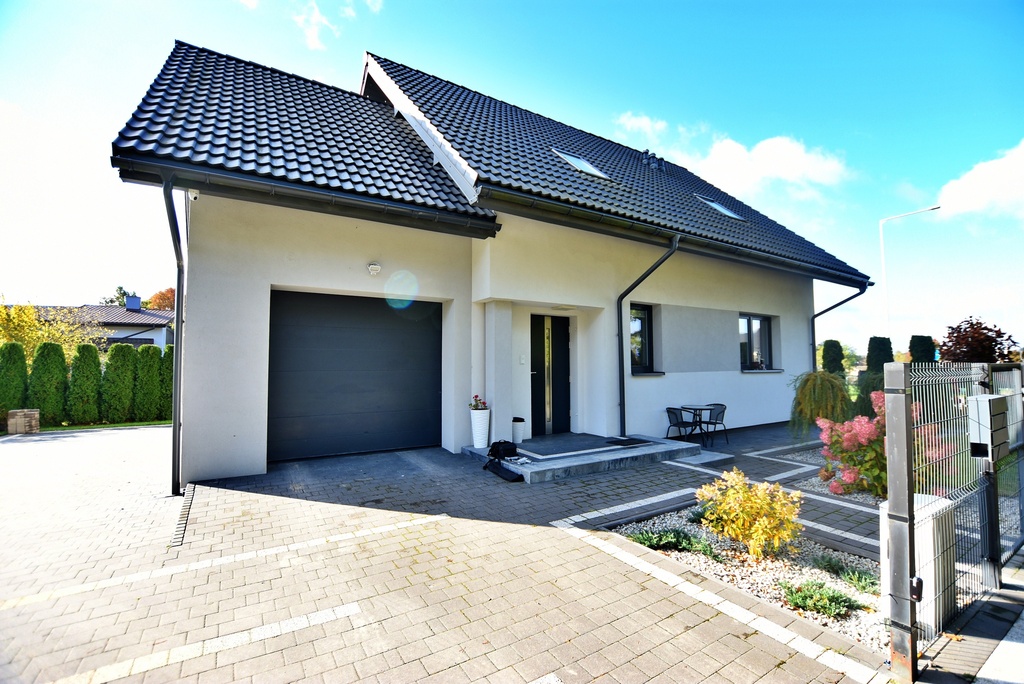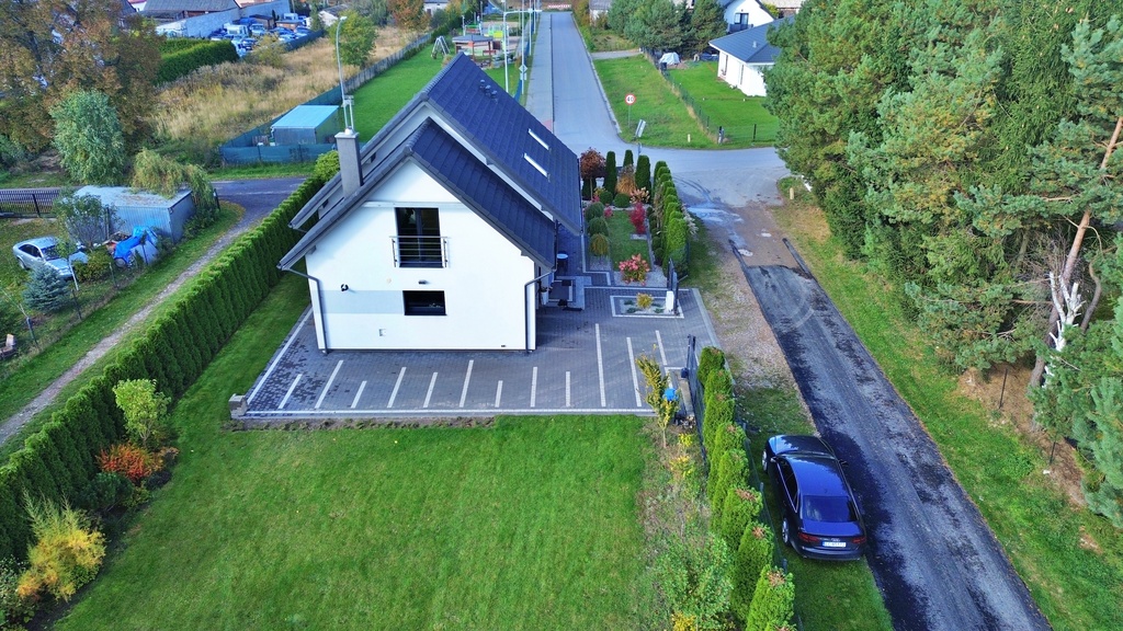 - Garaż jednostanowiskowy oraz dodatkowe miejsca parkingowe przed budynkiem.