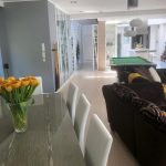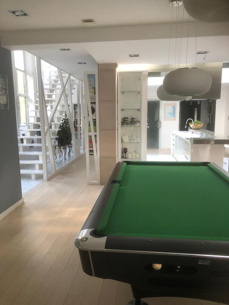 Zaraz po wyjściu z salonu na tarasie znajduje się basen kryty, całoroczny, z masażem, podświetlany.
